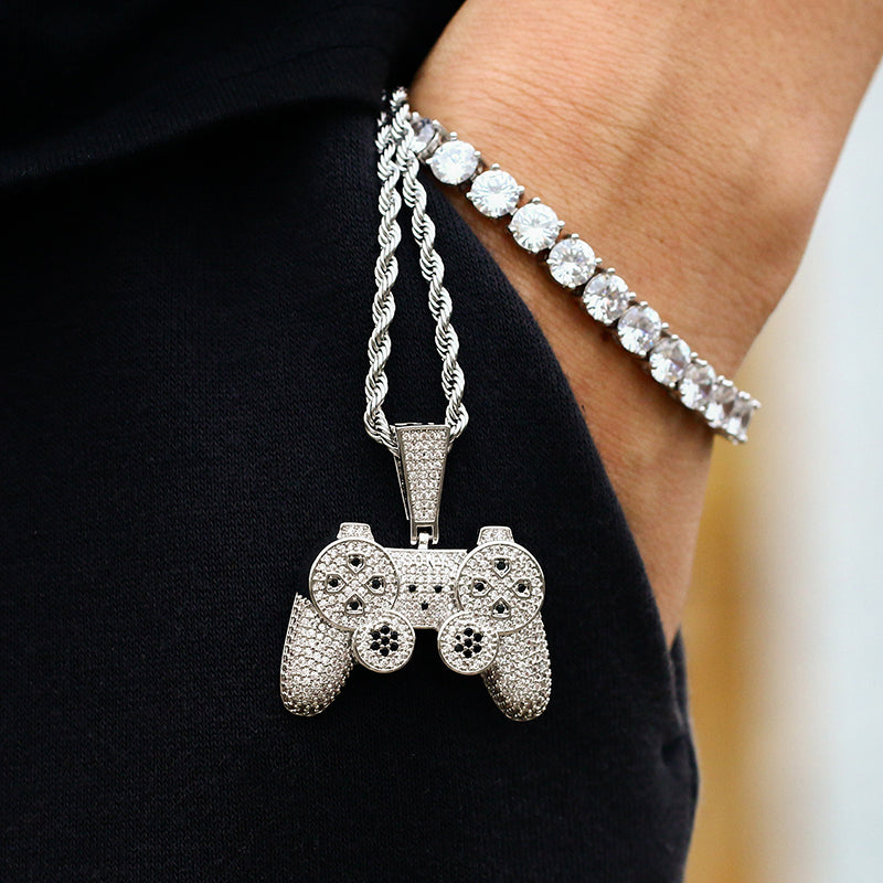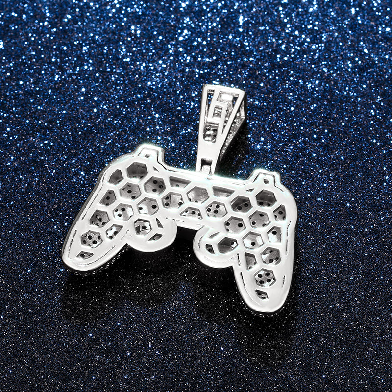This beautiful pendant is an exquisite piece of jewelry adorned with full cut diamonds on a game console design. Perfect for any gaming enthusiast, the highest quality diamonds create a unique and eye-catching piece.