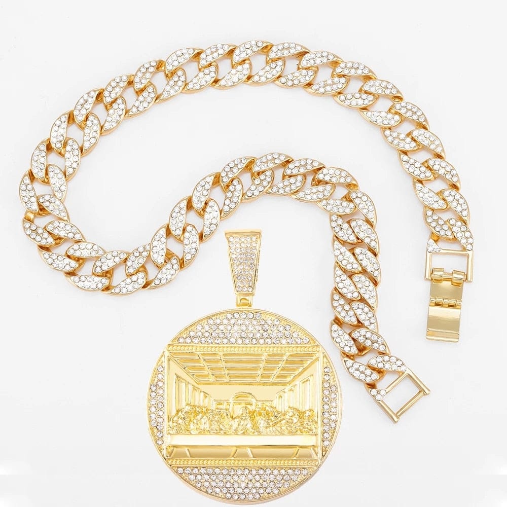 Looking for a stylish piece of jewelry that will showcase your faith while keeping up with the latest fashion trends? Look no further than the Iced Out Last Supper Pendant Cuban Necklace. This stunning necklace features a beautifully designed pendant that depicts the iconic Last Supper scene, expertly crafted with premium materials to ensure that it sparkles and shines for years to come. This is perfect for religious and hip-hop fans alike.