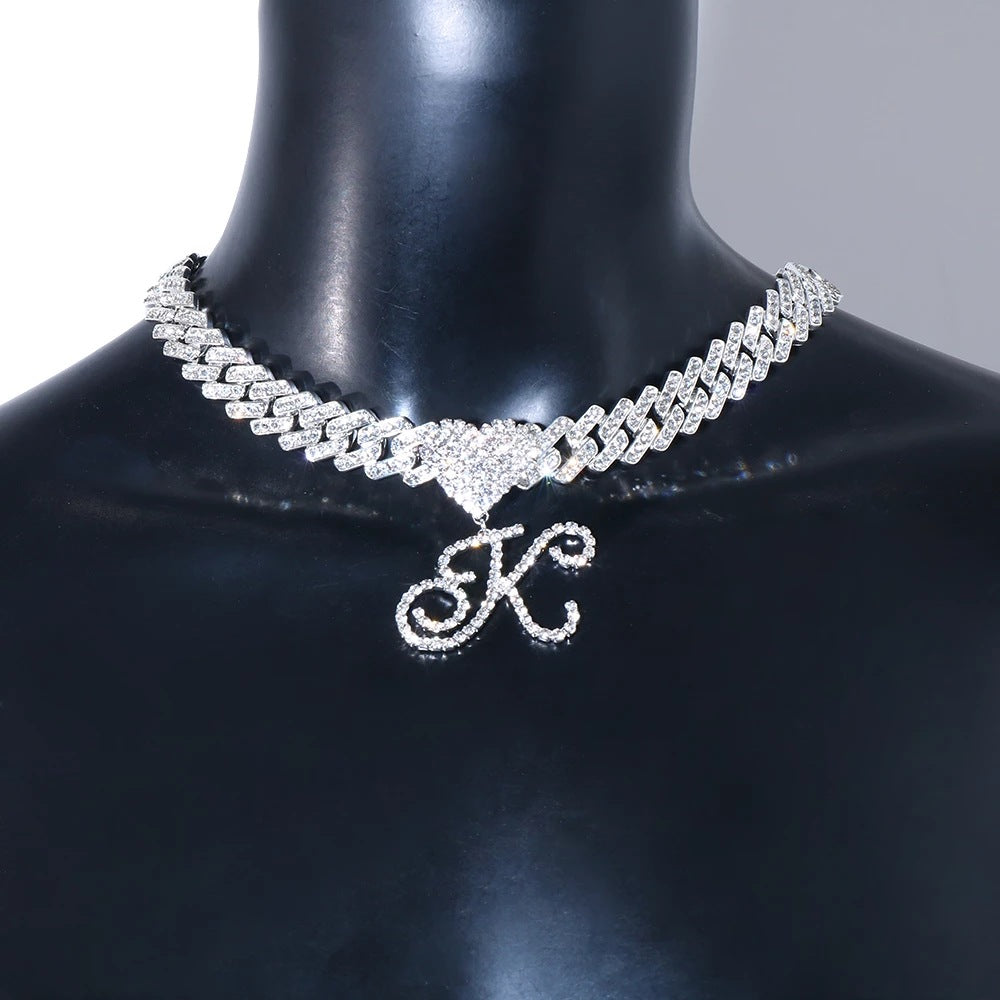 VVS Jewelry Initial Cuban Letter Choker Chain