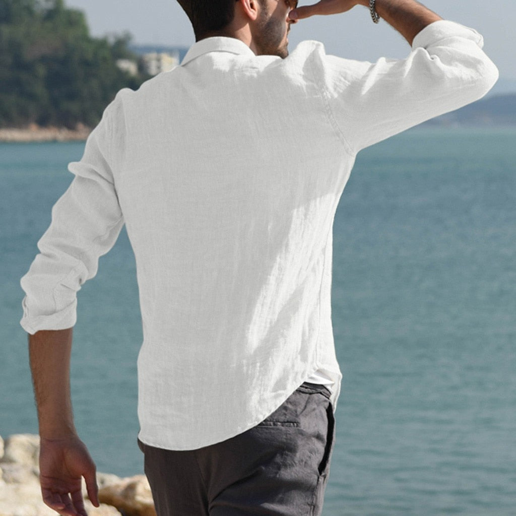 THIS SUMMER SHIRT, SUITABLE FOR ANY CASUAL LEISURE OCCASION, FEATURES A LONG SLEEVE, SOLID COLOR DESIGN, BUTTON-UP CLOSURES ON THE FRONT. THIS GARMENT IS PERFECT TO PAIR WITH SHORTS, JEANS, OR EVEN KHAKIS. THIS LIGHTWEIGHT SHIRT WILL SURELY BE ONE OF THE MOST COMFORTABLE ONES IN YOUR WARDROBE.