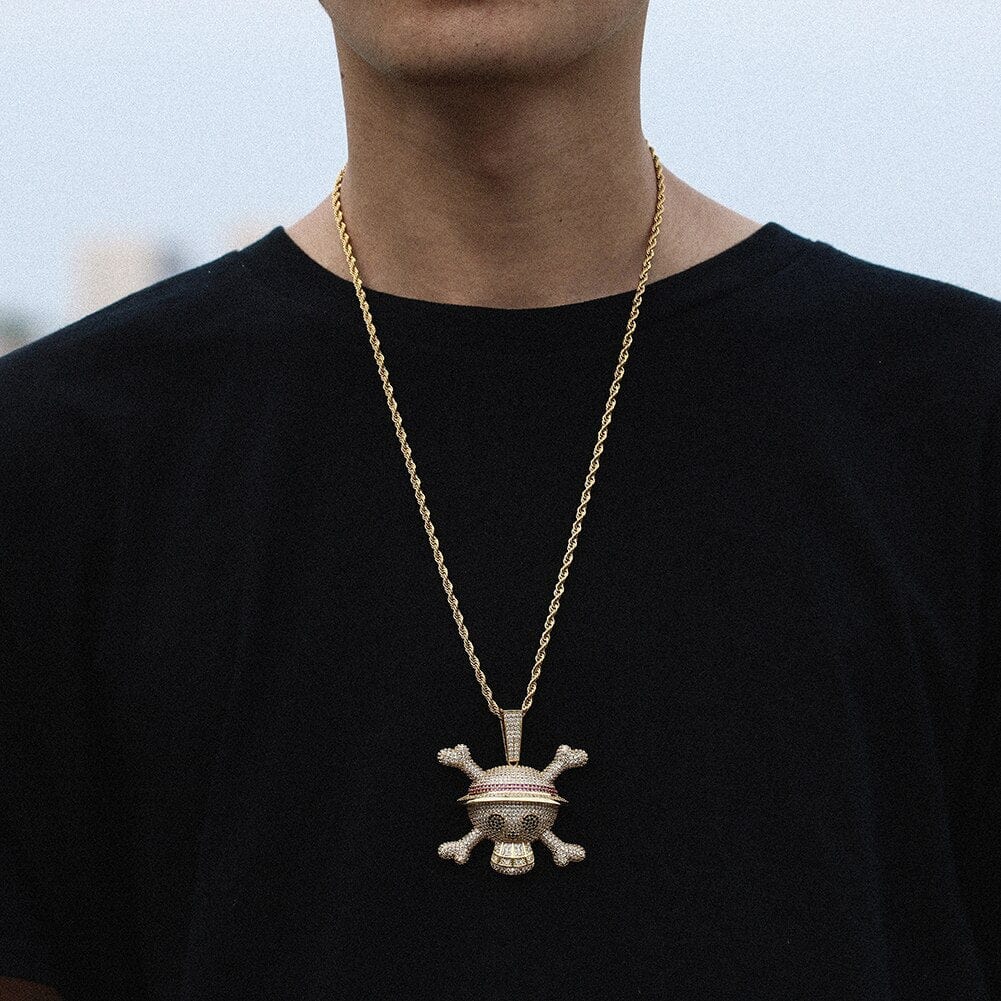 This King Crossbone Skull Pendant is trendy and hip-hop-inspired. It features a sleek insect shape with a copper finish and can be worn as an individual piece or as part of a set. The pendant is suitable for both men and women and can be worn on any occasion.