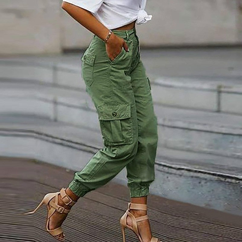 High waist cargo pants for women are very popular everywhere! This slim-fitting pair of cargo trousers are the epitome of urban chic. The Zim Baggy Cargo Trouser Pants are made of thick cotton, a high elastic waist, baggy, and stretchy bottom for excellent comfort and fitting. Great ankle length makes them comfortable to wear with sneakers or booties. You can also style it up with a pair of stilettos. For an effortlessly cool look, tuck in your shirt, and you'll be ready to go! All this versatility gives these cargo trousers an extra layer that will make them super comfortable to wear.