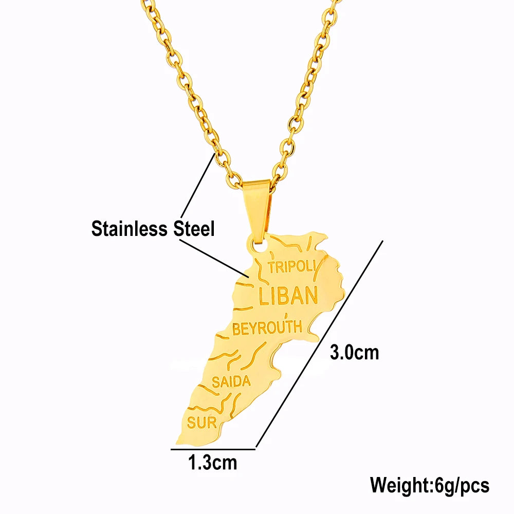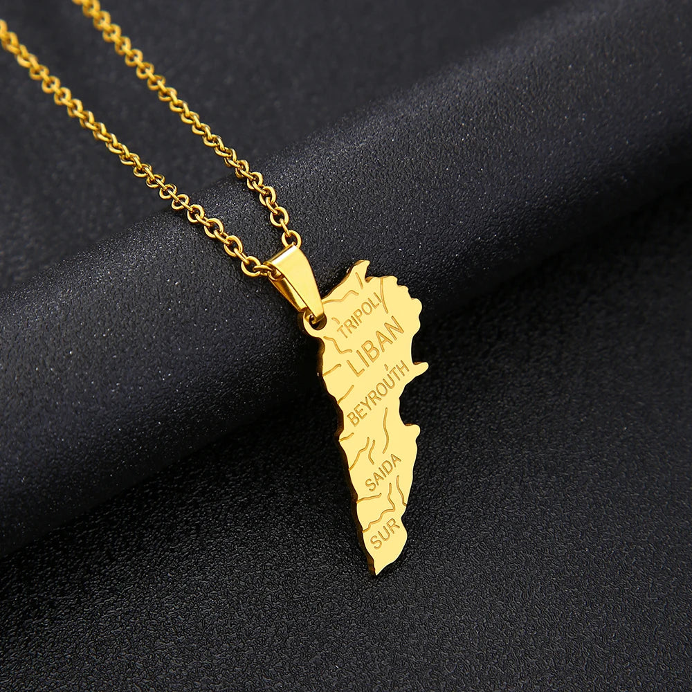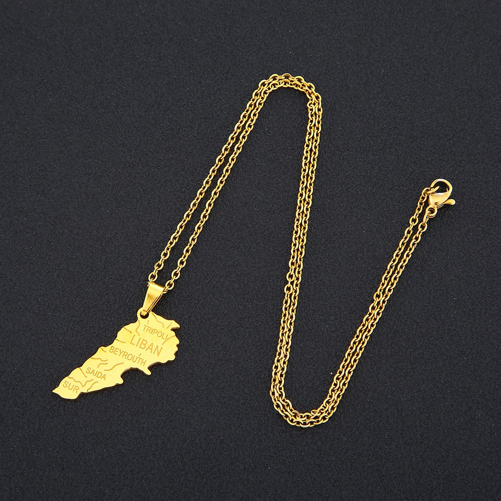 Middle East Lebanon Gold Map Necklace