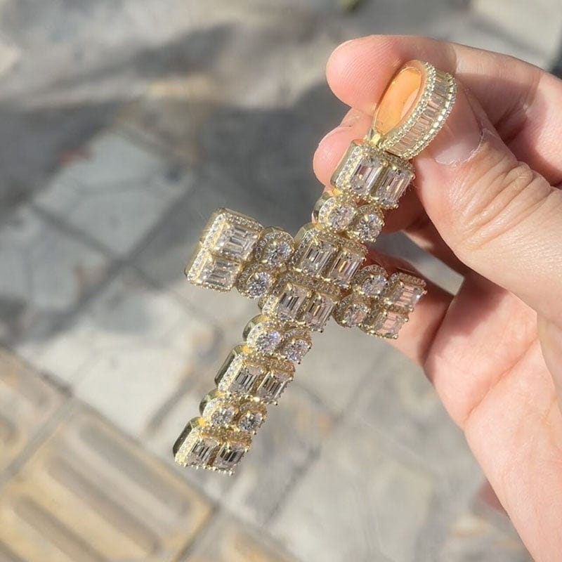 Gold/Silber-Baguette-Kreuz-Anhänger