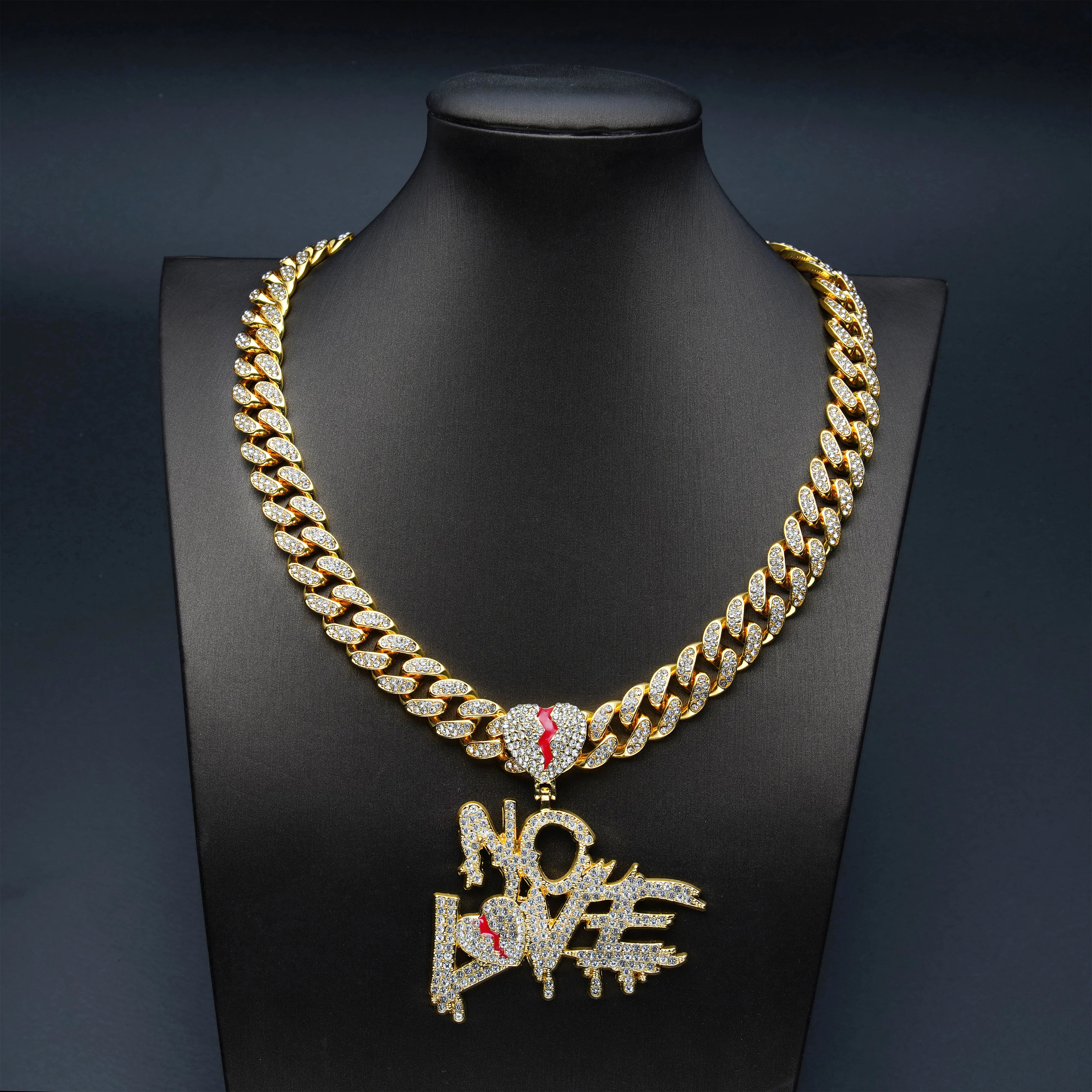 NO LOVE Buchstabenanhänger + kubanische Kette