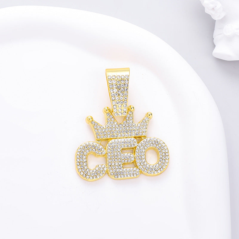 Halskette mit Anhänger „Gekrönter CEO“ in Iced Out