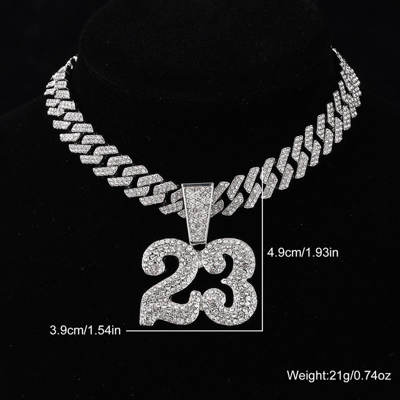 Jordan 23 Iced Out Halskette mit kubanischem Anhänger