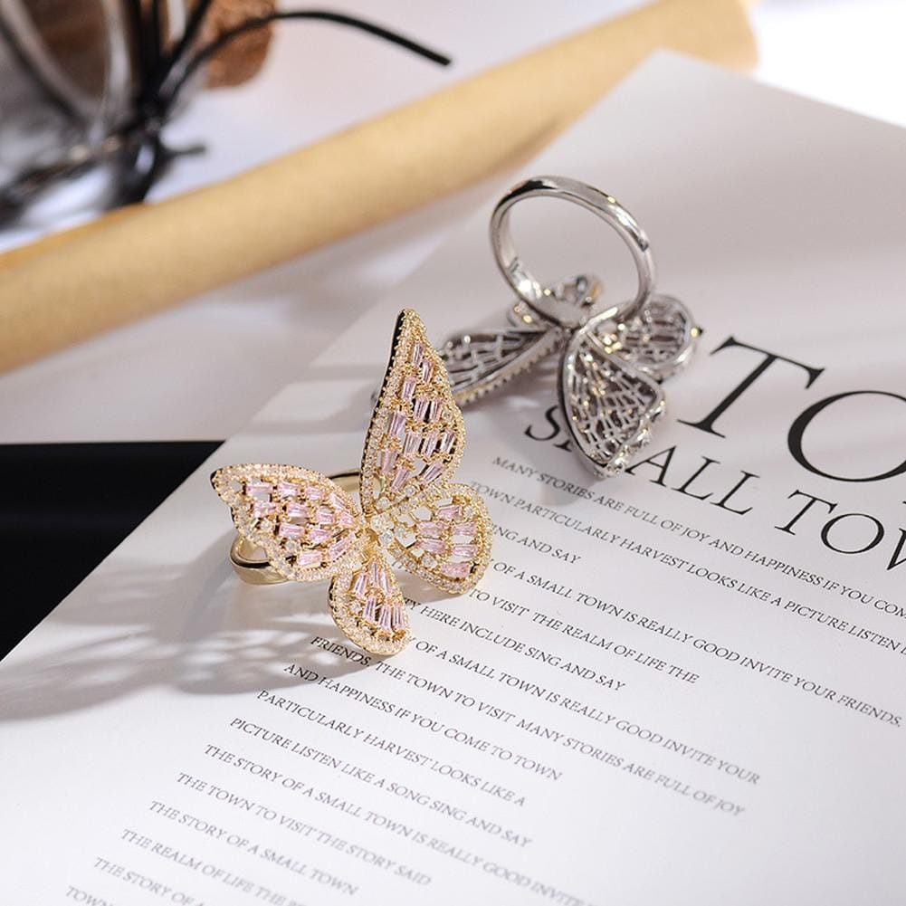Der schönste Schmetterlings- und Kristallring, der sich an jeden Finger anpasst, ist jetzt in der exklusiven Jewelhery-Kollektion. Es verfügt über eine exquisite Handwerkskunst, um sicherzustellen, dass es bei jeder Veranstaltung einen eleganten und glamourösen Look liefert. Es ist ein perfektes Paar bis zu unseremCuban Link Butterfly Choker. Vervollständigen Sie Ihr schickes Feen-Rockin'-Outfit mit diesem Ring.