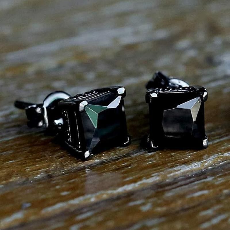 Schwarze Ohrstecker aus 925er Sterlingsilber mit CZ-Diamant für Herren
