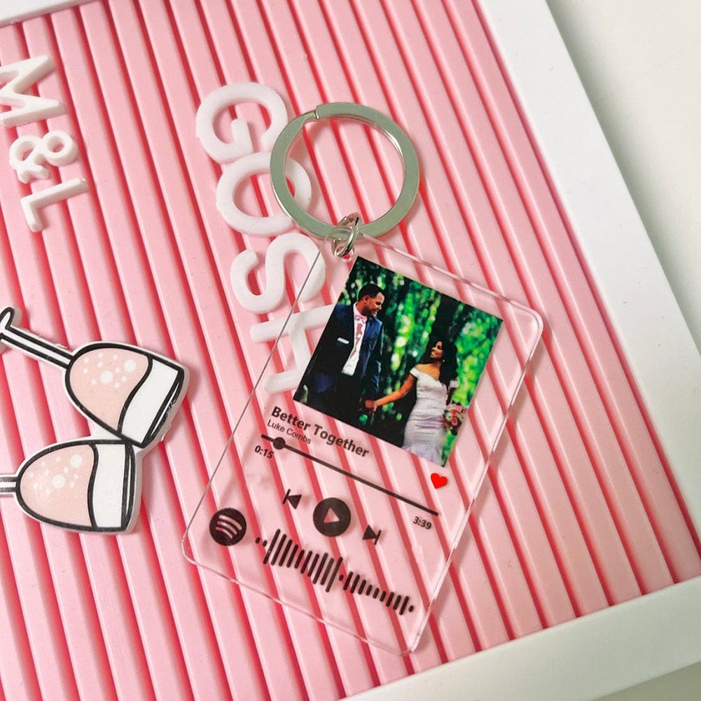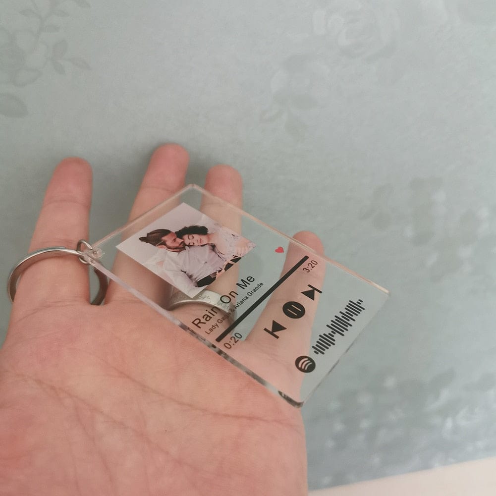Mit diesem benutzerdefinierten Spotify- und Foto-Schlüsselanhänger können Sie Ihre Lieblingsmusik ganz einfach abspielen und teilen, indem Sie einfach den Code scannen. An einem Schlüsselbund können Sie Ihr Lieblingslied und ein Foto haben, das Sie an schöne Erinnerungen erinnert. Es besteht aus hochwertigem Acryl, wodurch es leicht ist und sich ideal als Geschenk für jemanden eignet, den Sie lieben.