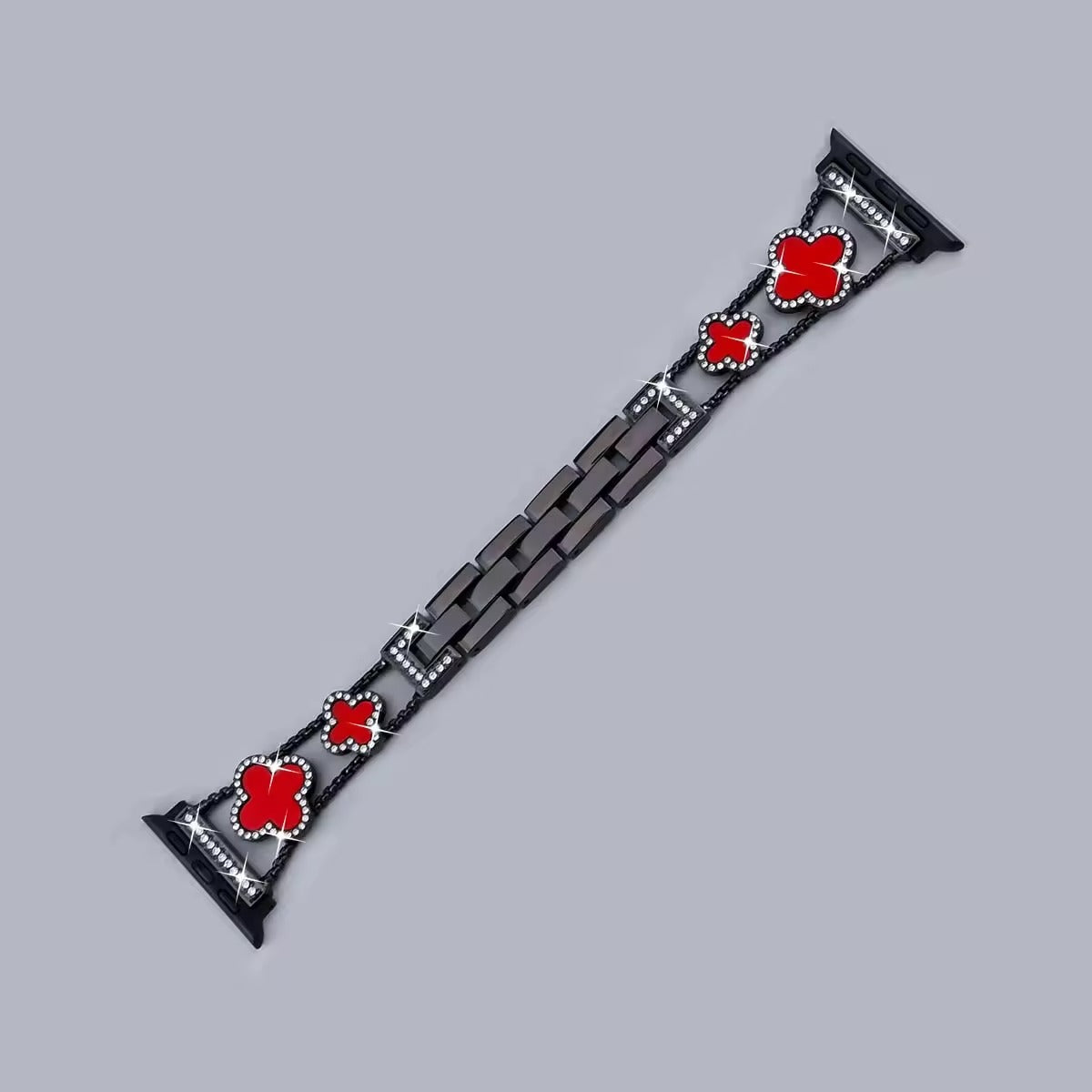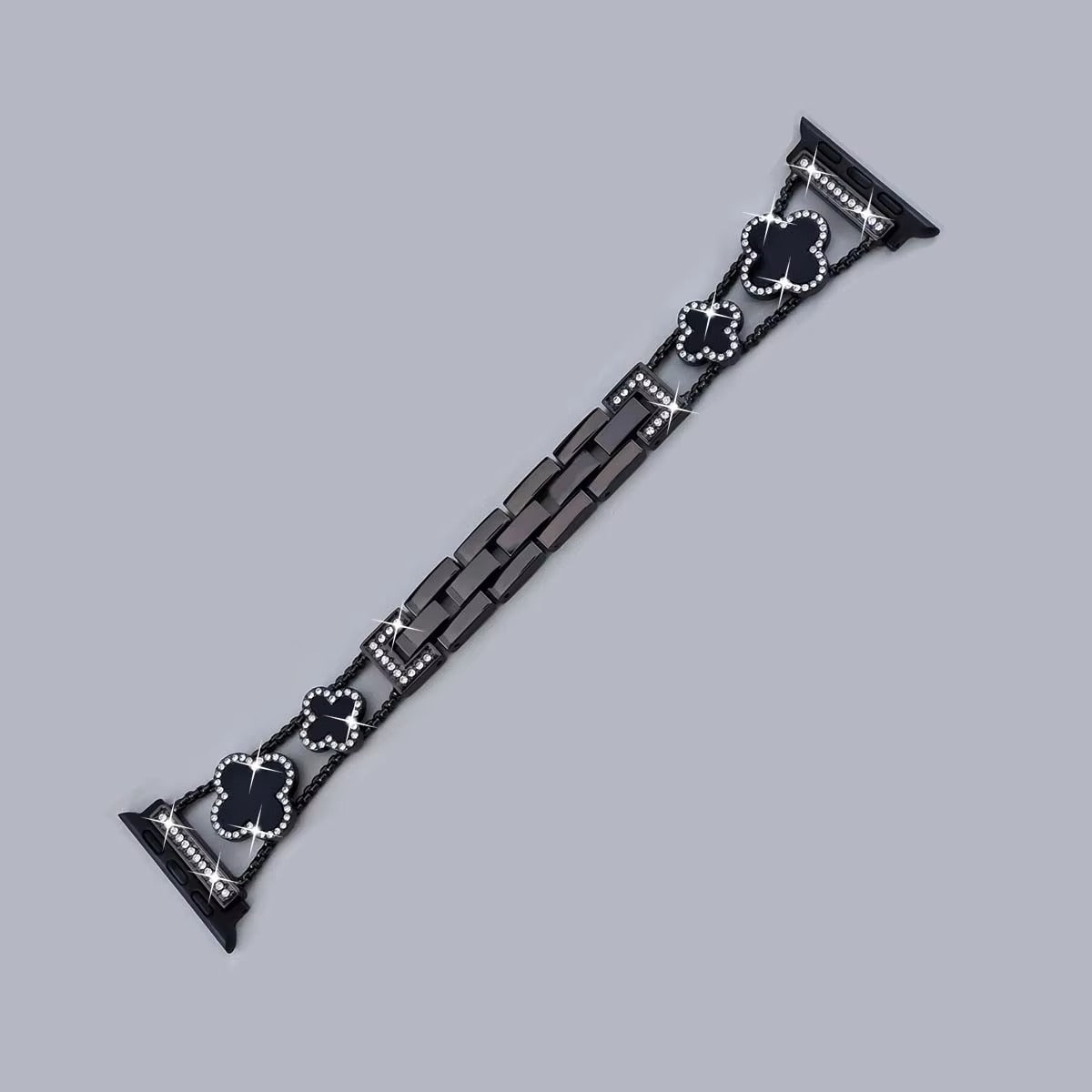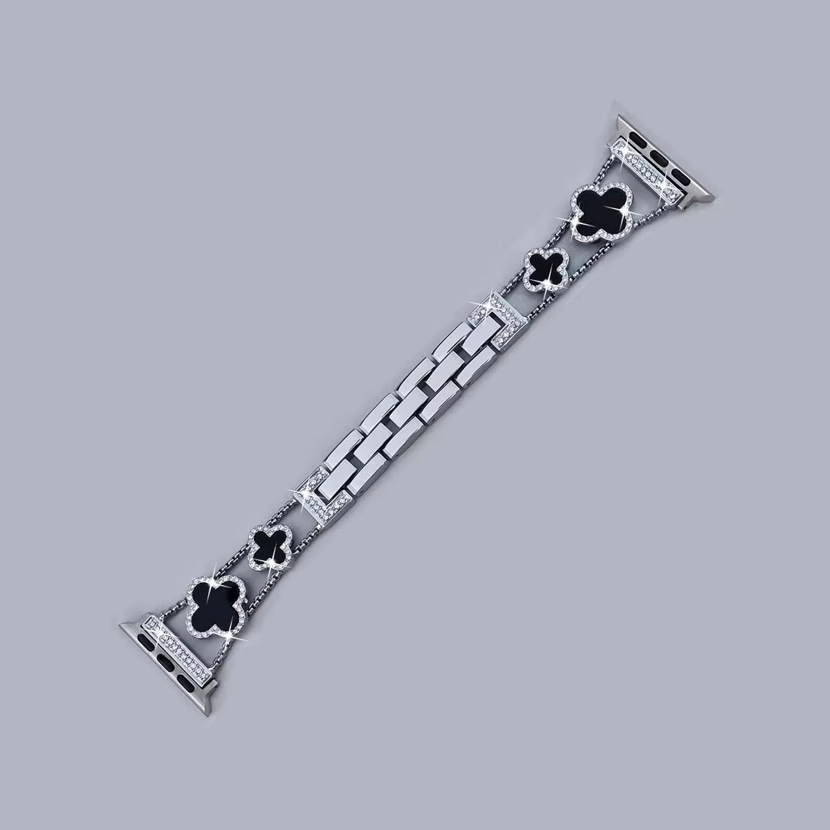 Veredeln Sie Ihre Apple Watch mit diesem wunderschönen Armband mit vierblättrigem Kleeblatt und schimmernden Diamantakzenten. Das aus hochwertigem Metall gefertigte und für Damen entworfene Armband vereint zeitlosen Charme mit modernem Stil – das perfekte Accessoire für jeden Anlass. Kompatibel mit der Apple Watch Series 8, 7, 6, 5, 4, 3 und 2 ist es ein Statement-Stück, das Schönheit und Anmut vereint.