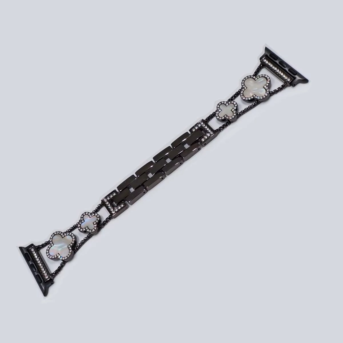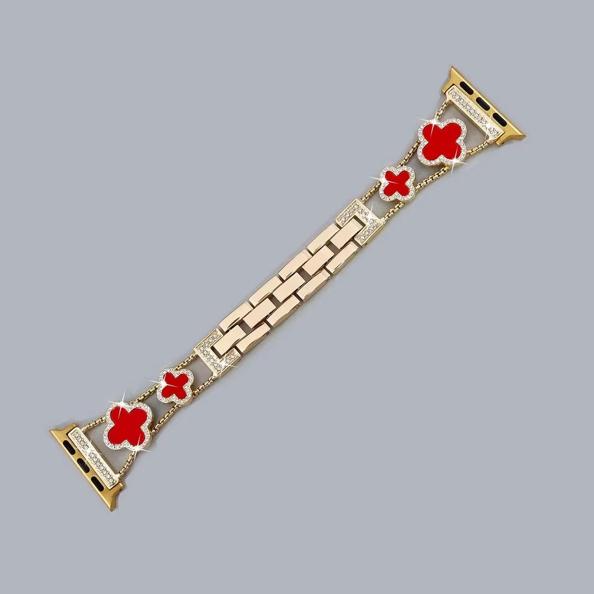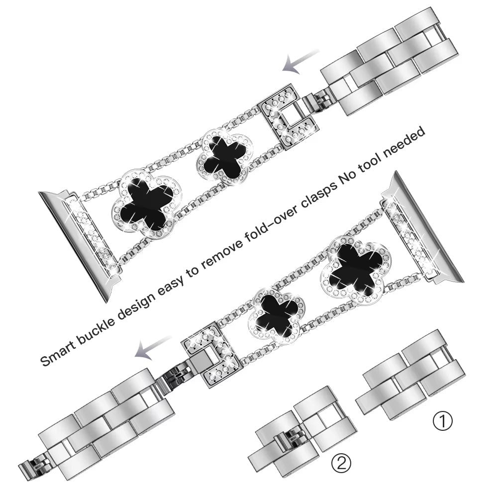 Veredeln Sie Ihre Apple Watch mit diesem wunderschönen Armband mit vierblättrigem Kleeblatt und schimmernden Diamantakzenten. Das aus hochwertigem Metall gefertigte und für Damen entworfene Armband vereint zeitlosen Charme mit modernem Stil – das perfekte Accessoire für jeden Anlass. Kompatibel mit der Apple Watch Series 8, 7, 6, 5, 4, 3 und 2 ist es ein Statement-Stück, das Schönheit und Anmut vereint.