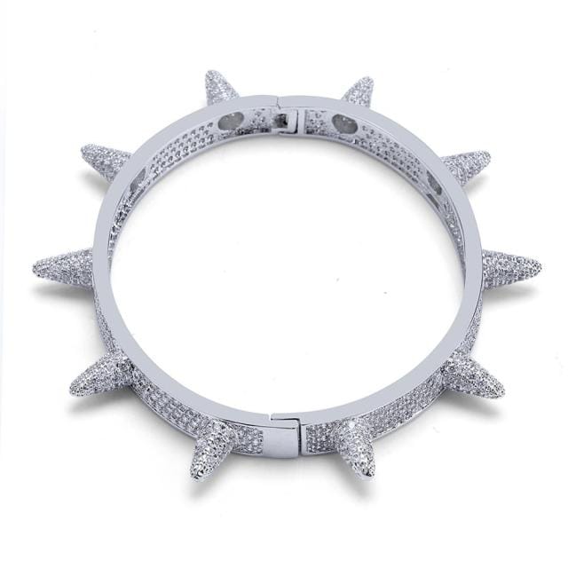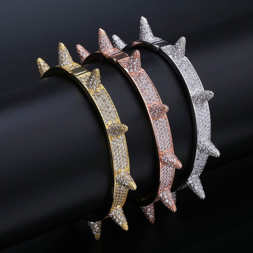 Dieses hochwertige Iced-Out-Herrenarmband verfügt über die besten im Labor hergestellten Diamanten auf dem Markt. Sie haben die Güteklasse AAA und bieten die gleiche Brillanz und das gleiche Funkeln wie natürliche VVS-Diamanten, ohne dass dafür hohe Kosten anfallen. Genießen Sie unseren Mikropavé-Spike-Armreif allein oder mit Ihrem anderen kubanischen oder Tennis-Armband.
