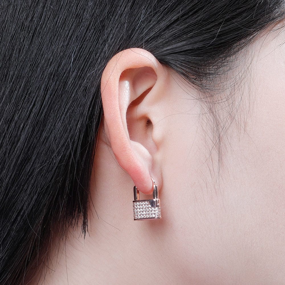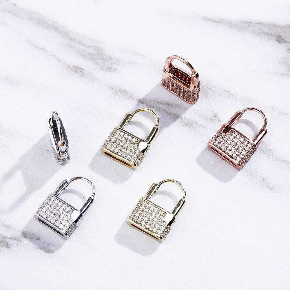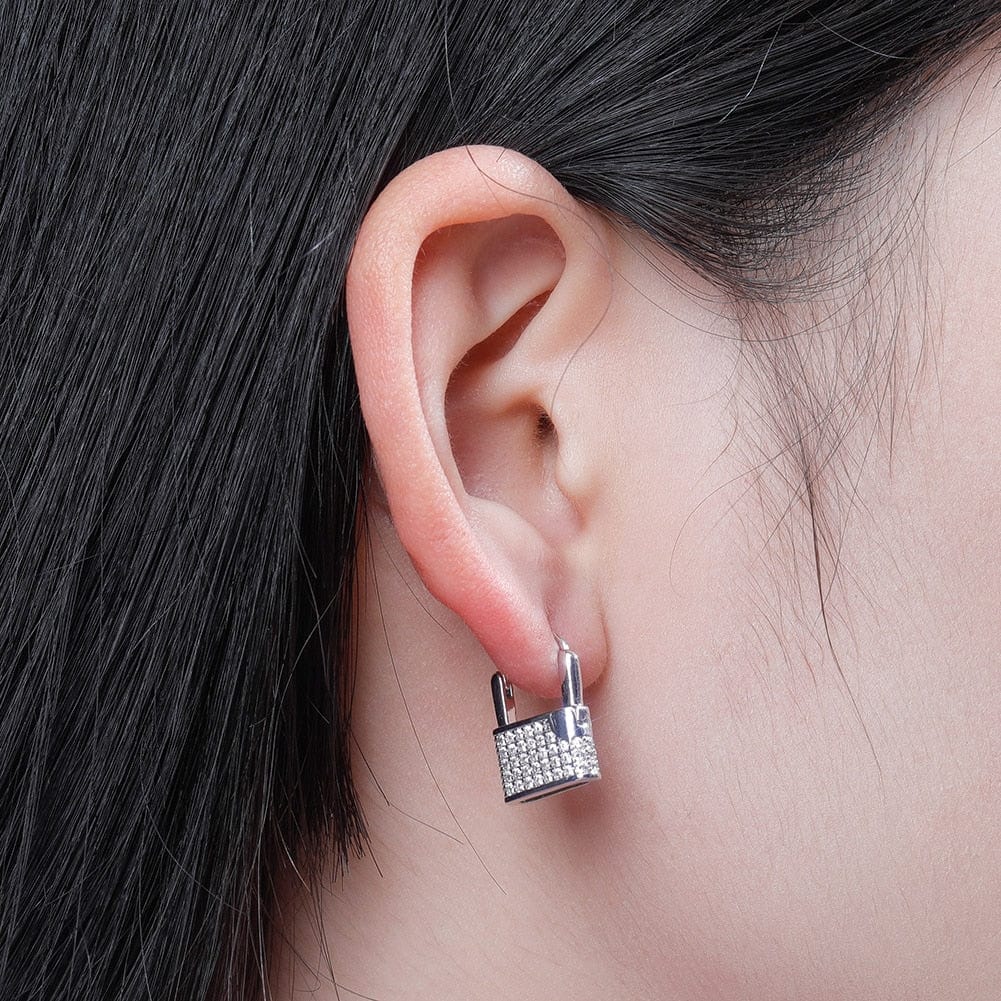 Verleihen Sie Ihrem Gesamtstil einen Hauch von Einzigartigkeit und Eleganz mit diesen Iced Out Lock-Ohrringen.