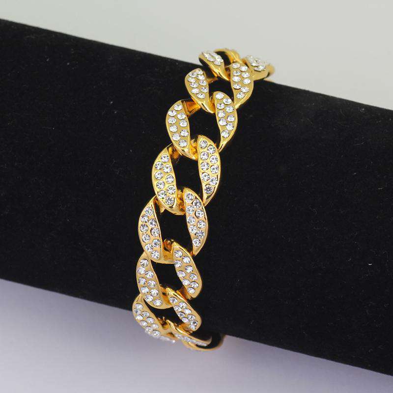 Kette und Armband aus 14 Karat vergoldeter, vollständig vereister Kubaner