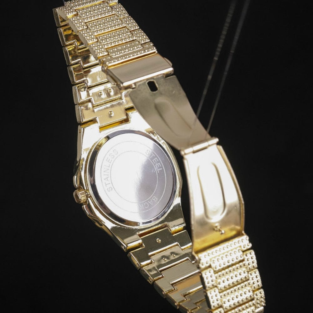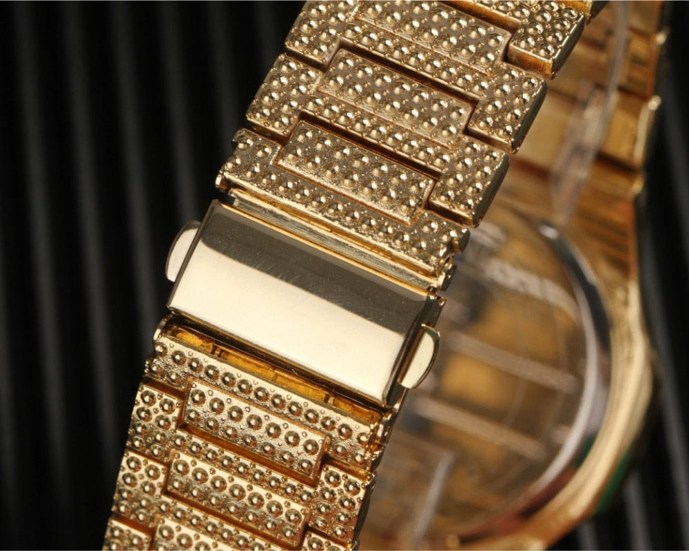 Erfüllen Sie alle Ihre Hip-Hop-Bling-Bedürfnisse mit unserem stilvollen und erschwinglichen Swag Cross All In Drip Set. Dieses Set enthält eine goldene Uhr, zwei Armbänder, einen Ring, die trendigen geometrischen Bling-Ohrringe, ein rhodiniertes, schickes Kreuz und eine hochwertige kubanische Kette. Alle verfügen über einen perfekten AAA+-Zirkonia-Stein, hochwertigen Edelstahl und eine Krappenfassung, die dieses Set klassisch, modisch und luxuriös macht. Ihre Kumpels würden sicherlich den Kopf verdrehen, wenn Sie dieses schicke Set bei jeder Gelegenheit zur Schau stellen würden. Jeder Stein wird sorgfältig von einem professionellen Juwelier gefertigt und sorgt für einen absolut eisigen Look.