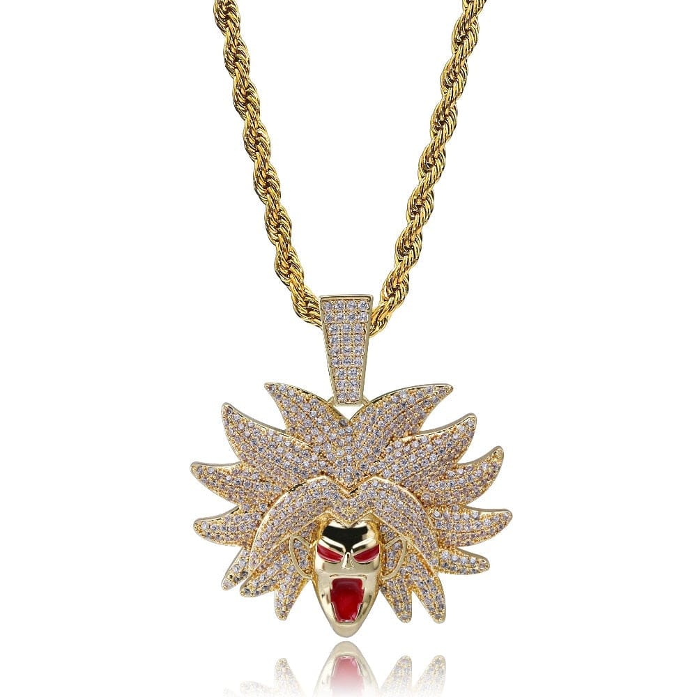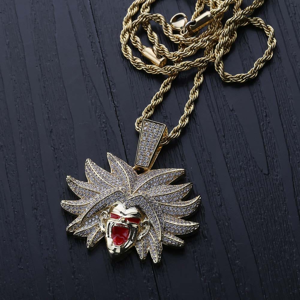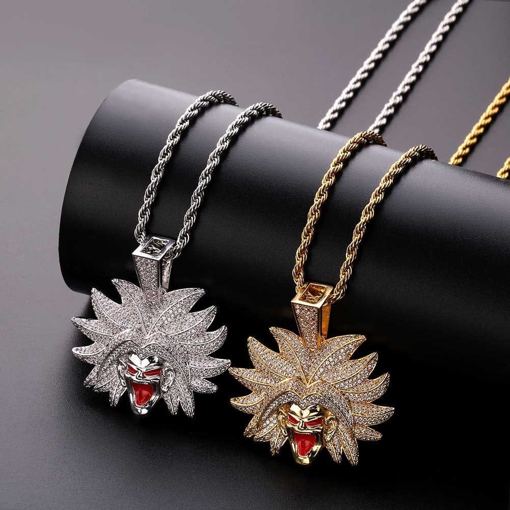 Das ist eine tolle Ergänzung für deine Sammlung! Dragon Ball Super Saiyan Son Goku Broly Iced-Out-Anhängerkette ist jetzt erhältlich.