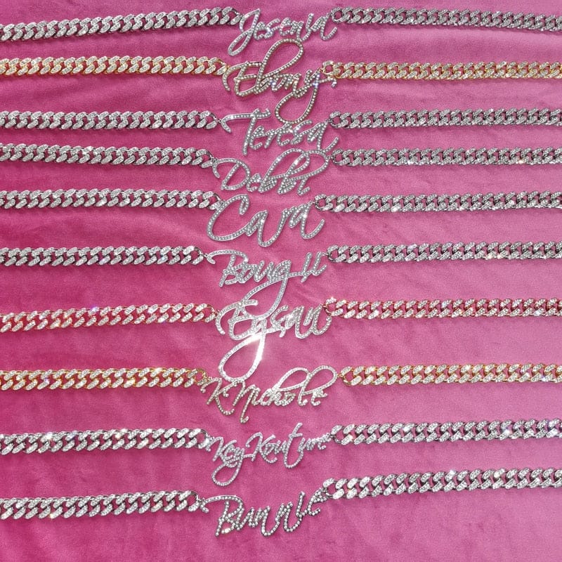 Ερωτευτείτε την πιο πρόσφατη προσαρμοσμένη τάση μας. Η αλυσίδα μας με προσαρμοσμένο σενάριο ονομασίας Cuban link είναι ό,τι καλύτερο πρέπει να έχετε. Είναι κατασκευασμένο από υψηλής ποιότητας επίστρωση χρυσού 18 καρατίων πάνω από ορείχαλκο και κυβικά ζιργκόν που σίγουρα θα σας άρεσε.