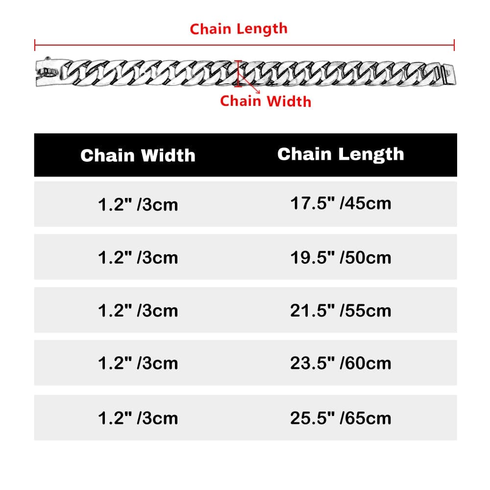 Ποιος χρειάζεται αυτό το κολάρο; Έχετε σκύλο που του αρέσει να μασάει; Αν ναι, τότε αυτό το κολάρο είναι τέλειο! Το πολυτελές κολάρο με αλυσίδα κουβανέζικου συνδέσμου φαίνεται ωραίο τόσο σε αρσενικά όσο και σε θηλυκά σκυλιά. Είναι σχεδιασμένο για μεσαίους ή μεγάλους σκύλους. Είτε εκπαιδεύετε είτε απλώς κάνετε βόλτα τον σκύλο σας αυτή η αλυσίδα είναι σταθερή και βαριά γιατί δεν είναι κούφια. Είναι κατασκευασμένο από υψηλής ποιότητας ανοξείδωτο ατσάλι με εκπληκτικές πέτρες CZ σε αλυσίδες που το έκαναν να ξεχωρίζει από το πλήθος με εξαιρετικής ποιότητας γυαλισμένη κατασκευή κάνει την επιφάνεια λαμπερή, λεία και άνετη. Πιστεύουμε ότι ο σκύλος σας θα είναι περήφανος που φορά αυτό το κολάρο. Είναι διαθέσιμο από 17,7" έως 25,5" Δείτε την παρεχόμενη εικόνα για οδηγίες μέτρησης.