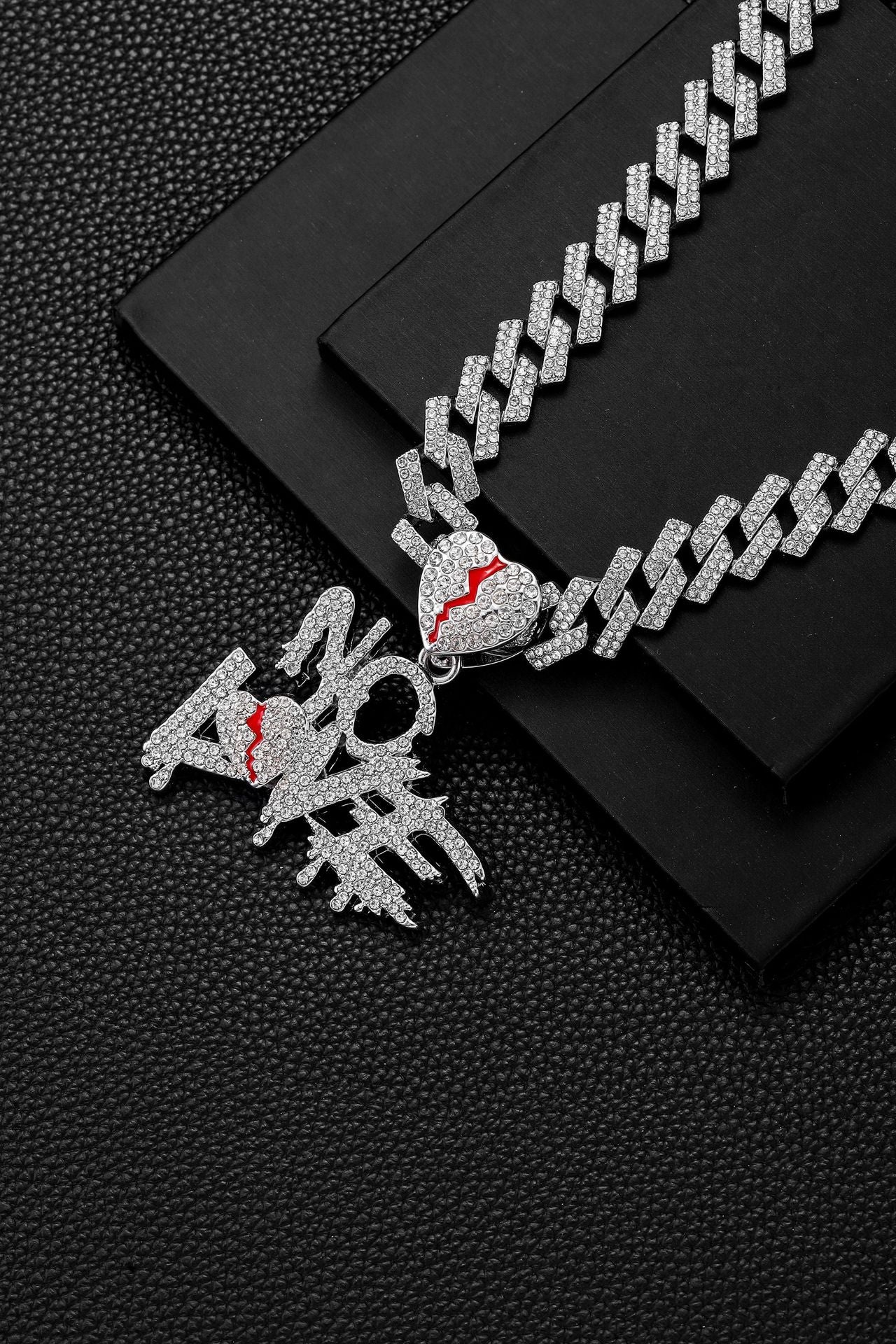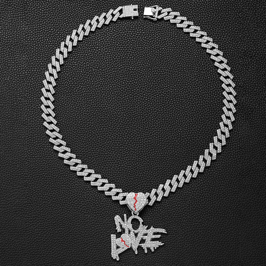 NO LOVE Letter Pendant + Cuban Chain