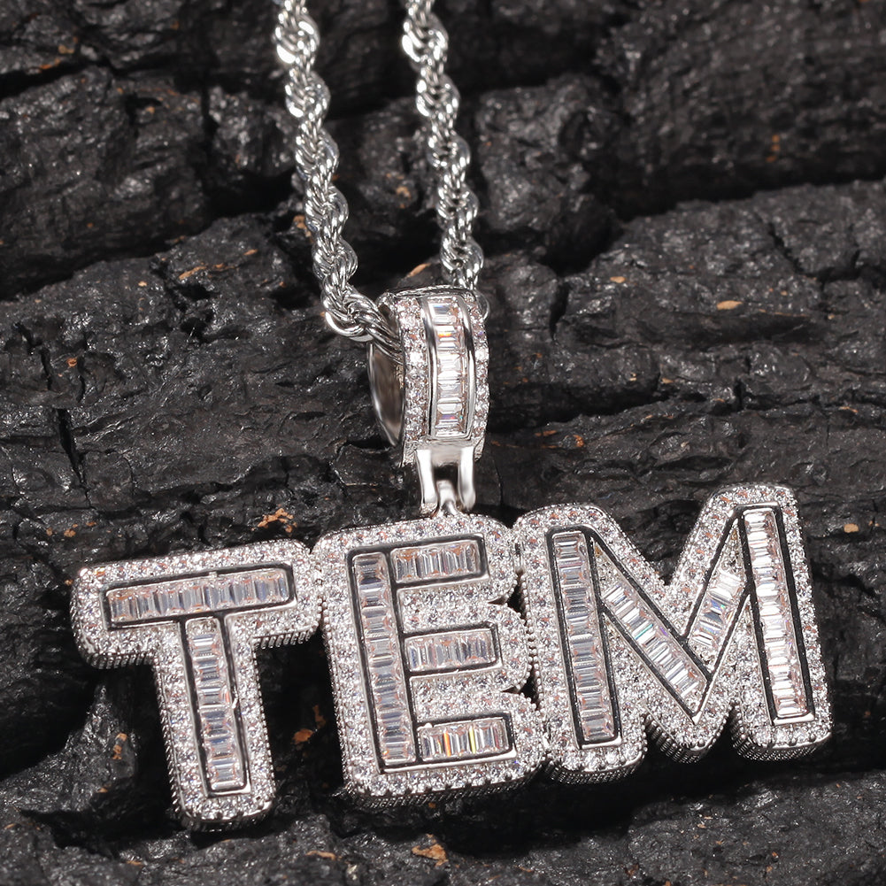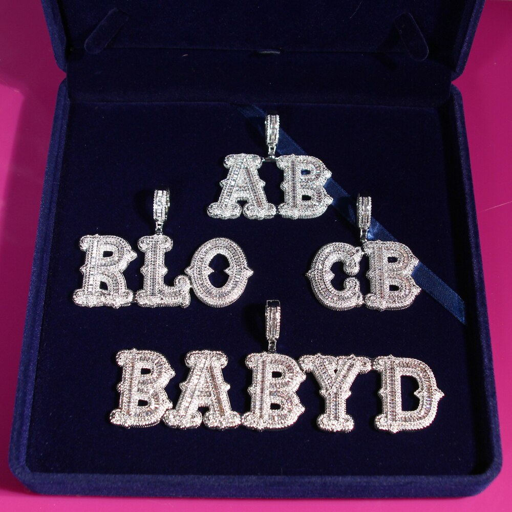 VVS Jewelry Custom Western Font Baguette Letter Pendant Necklace