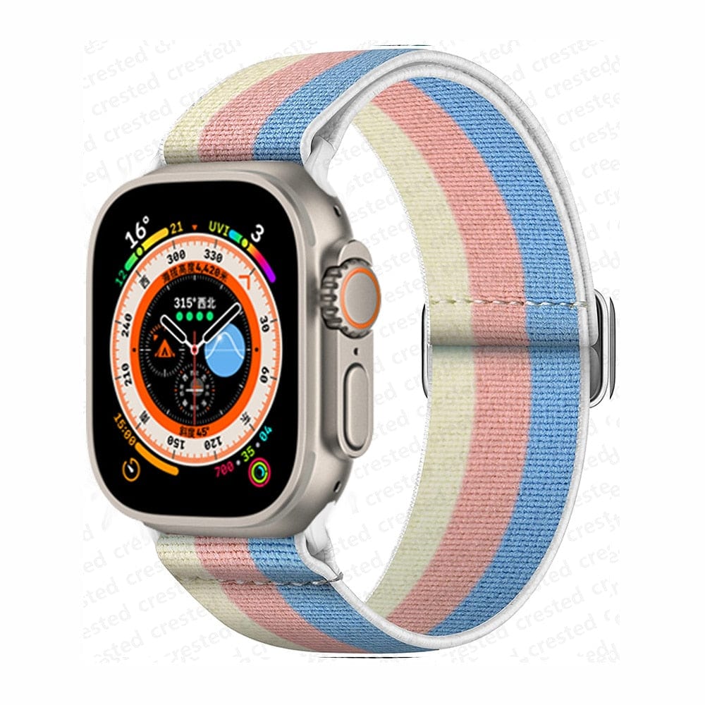 This Apple Watch band is made of high-quality stretchable nylon, making it comfortable and lightweight to wear. Its strap has a trendy design and color that add style to your overall outfit.