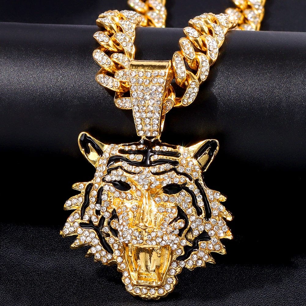 Unleash Your Inner Beast with the Bling Tiger Pendant Cuban Link Chain Necklace