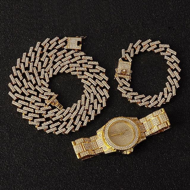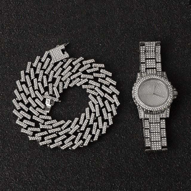 ¡Completa tu elegante y sofisticada colección de joyas aquí mismo con nuestro juego de relojes Miami Micro Pave Cuban Link! ¡Todo lo que necesitas está aquí! Si necesita estar listo para las luces, la cámara y, por supuesto, algo de acción. Este es el impresionante conjunto que seguramente te encantará. Tiene la cadena Miami Cuban Chain y el brazalete que se combina igualmente con un atractivo reloj de diamantes CZ.