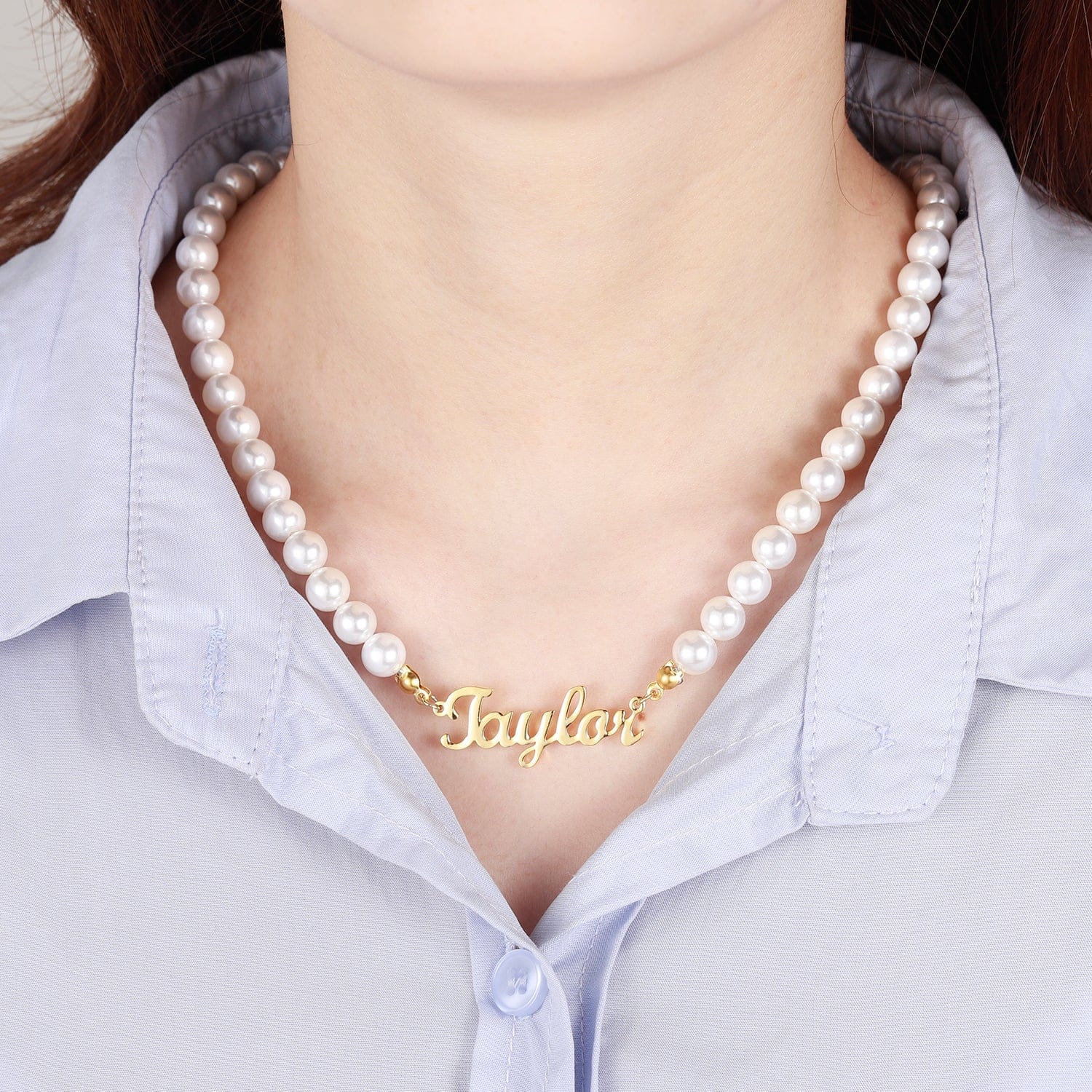 VVS Jewelry Pearl Chaîne de nom cursive personnalisée