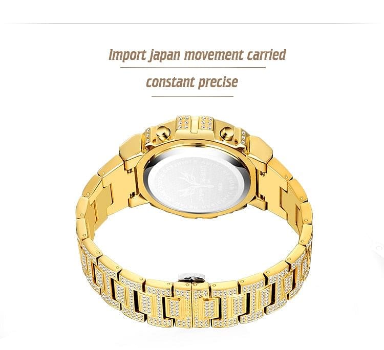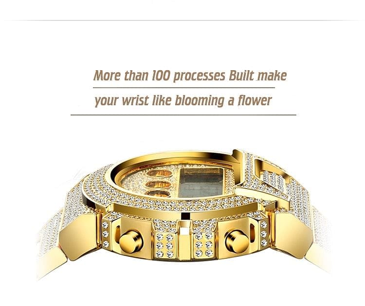 Type de matériau du bracelet : ACIER INOXYDABLE, fini plaqué or 18 carats.