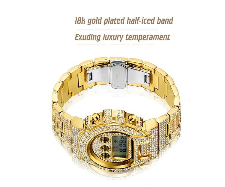 Vous voulez quelque chose de sportif mais d'élégant ? Cette montre en or numérique tendance de style G est la meilleure offre pour vous ! Cette superbe montre est dotée d'un mouvement à quartz fiable qui garde l'heure précise. Il a également une résistance à l'eau quotidienne de 30 m (pas pour la douche et la natation), une résistance aux chocs et un calendrier complet. C'est la montre parfaitement impeccable que vous devriez avoir ! Faites-en le vôtre maintenant.