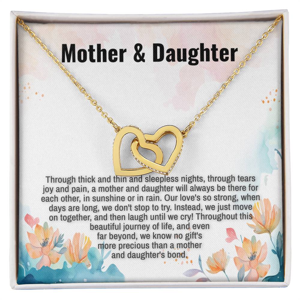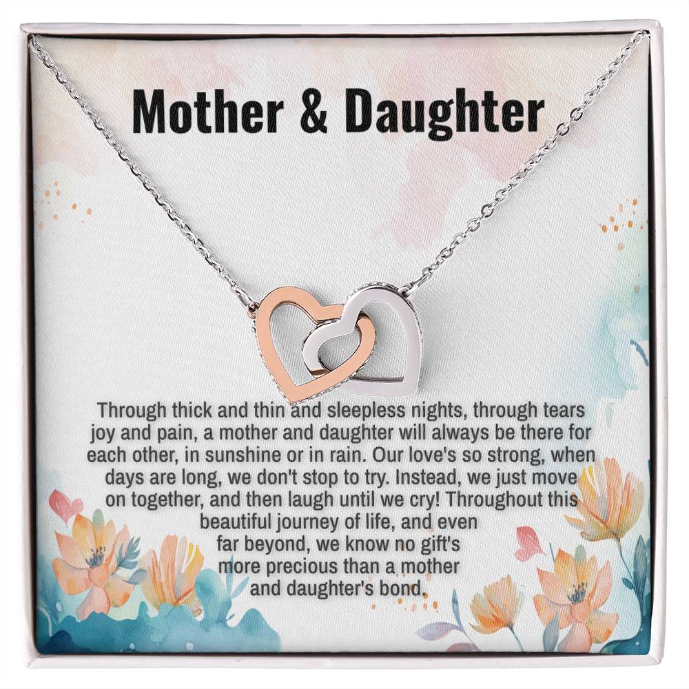 Mother & Daughter Message Card Interlocking Hearts Necklace