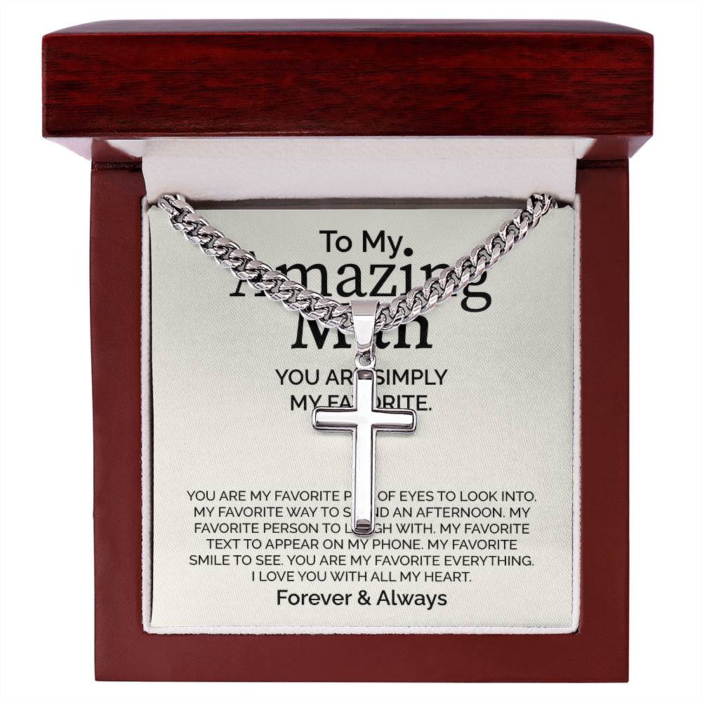 To My Man - Husband or Boyfriend (I Love You Forever and Always) Message Card Necklace