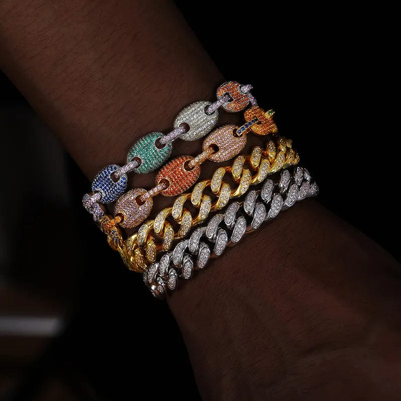 925 Sterling Silver 12mm VVS Moissanite Rainbow G-Link Cuban Chain