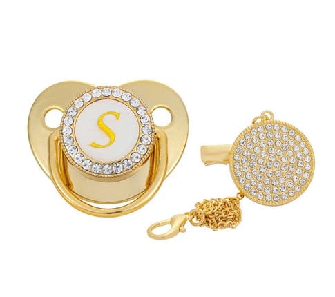 Custom Gold Bling Initial BPA Free Baby Pacifier