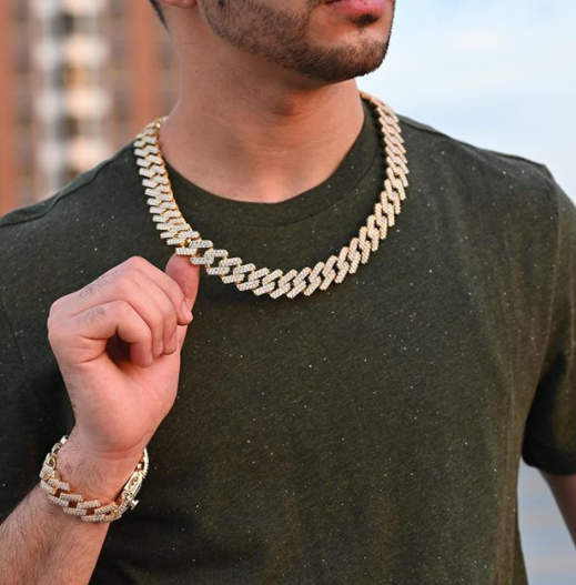 18k Gold/Silver Cuban Link Chain Set – Iced Out Necklace & FREE Bracelet