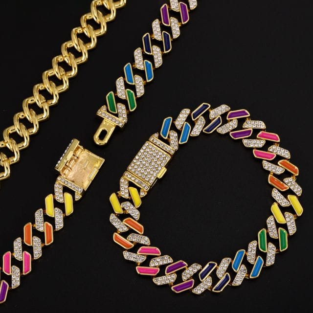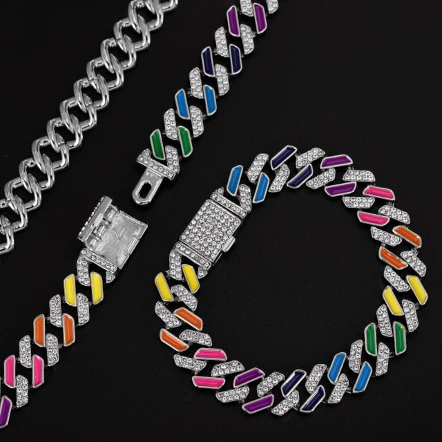 Rainbow Cuban Link Chain – Multicolor Iced Out Necklace & FREE Bracelet