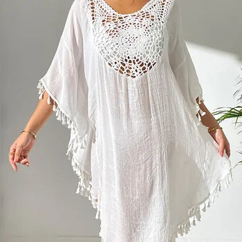 Step into summer with confidence in the Celine Bikini Crochet Summer Cover-up Dress. Whether you're soaking up the sun or enjoying seaside cocktails, this cover-up ensures you radiate effortless style and vacation-ready sophistication.