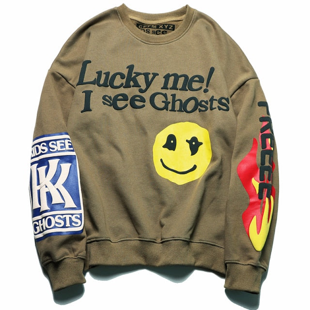 Graffiti Letter Foam Baggy Lucky Me I see Ghosts Graphic Hoodies