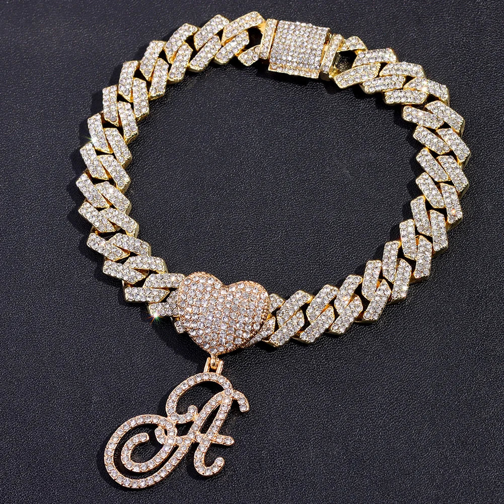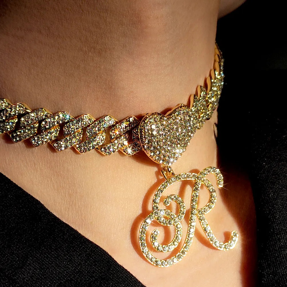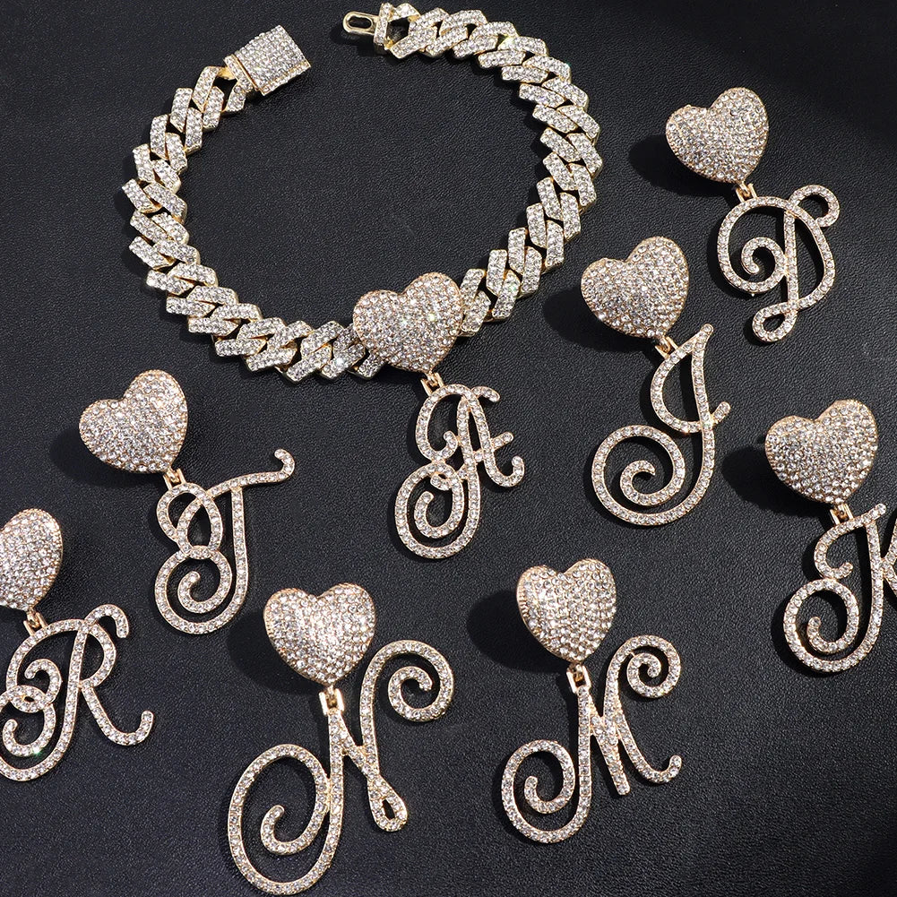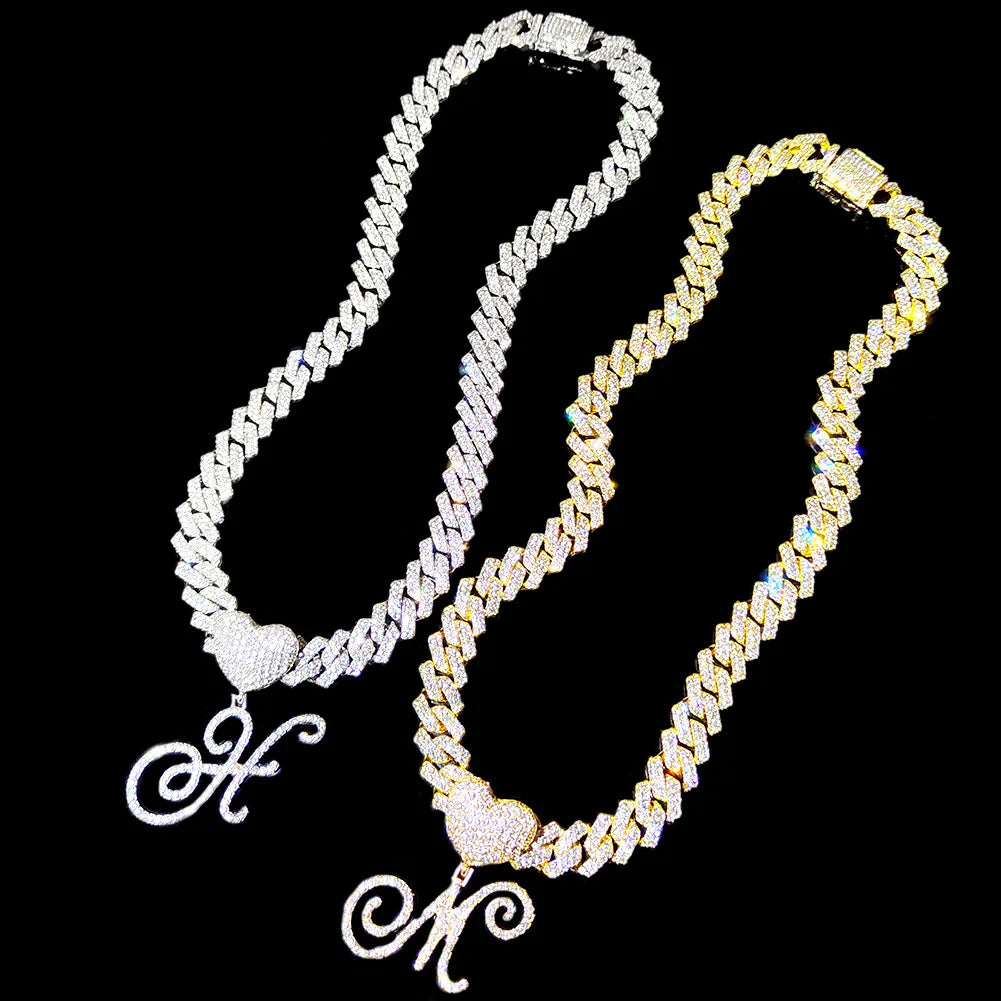 Cursive Letter Pendant Cuban Chain and FREE Bracelet