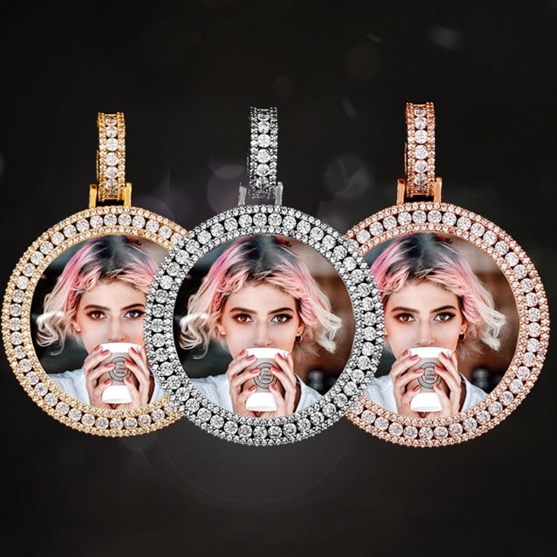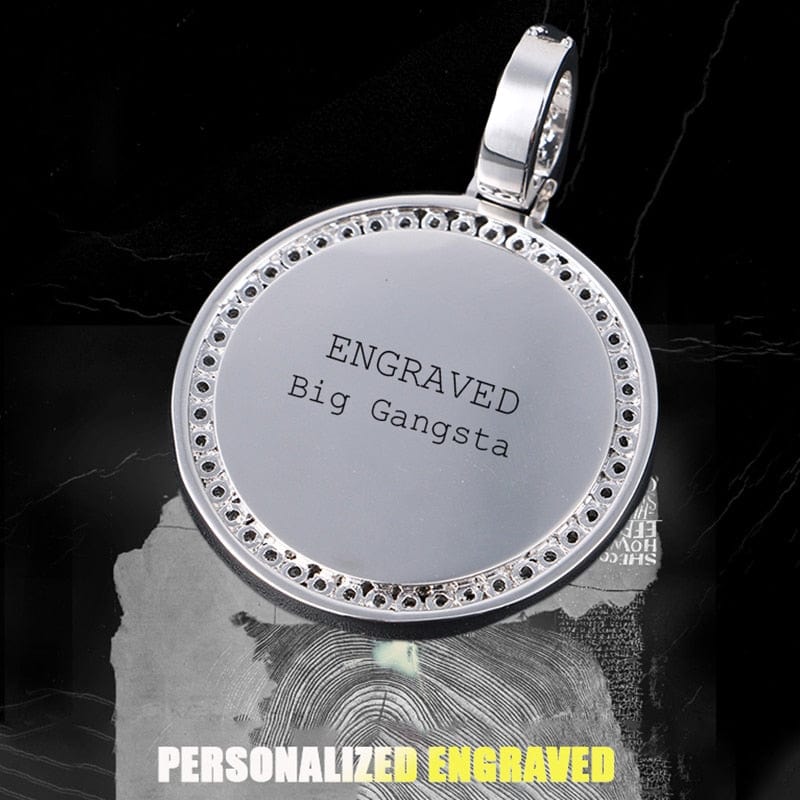 Aangepaste ronde stenen fotohanger + GRATIS gravure op de achterkant