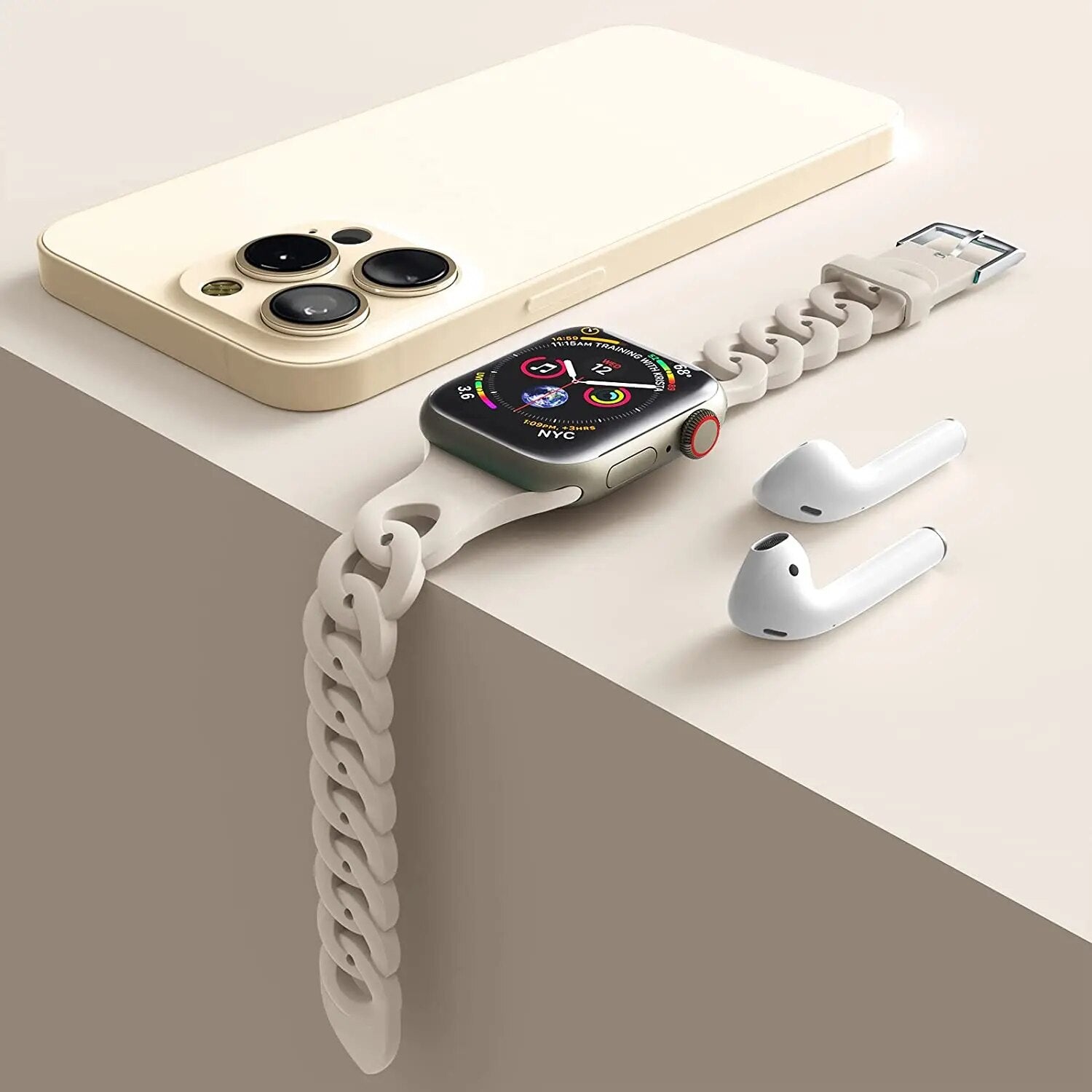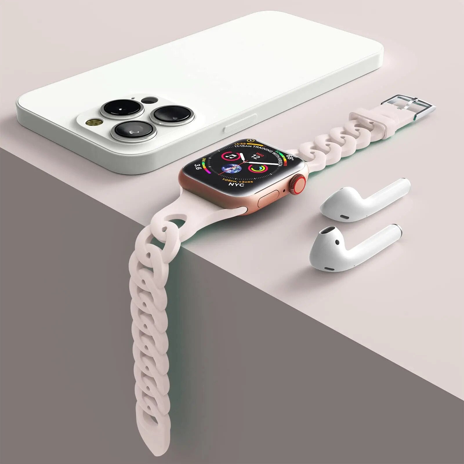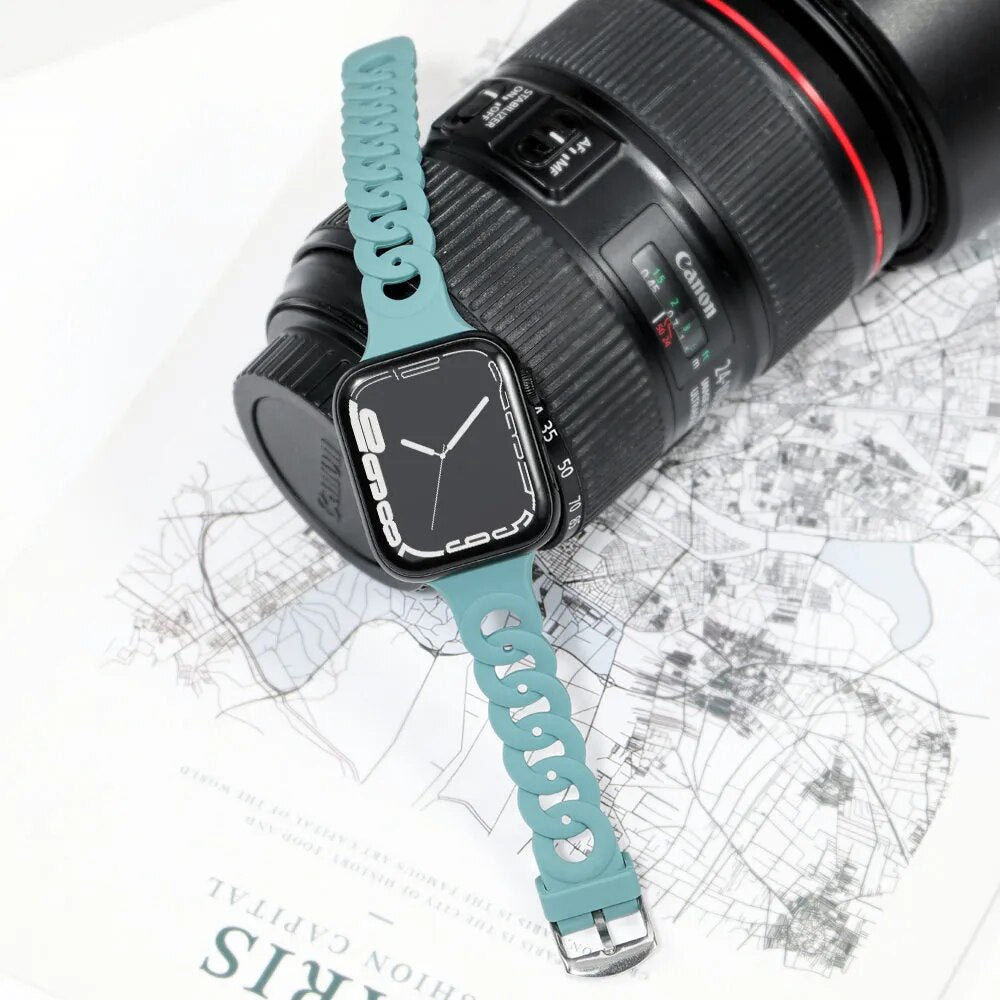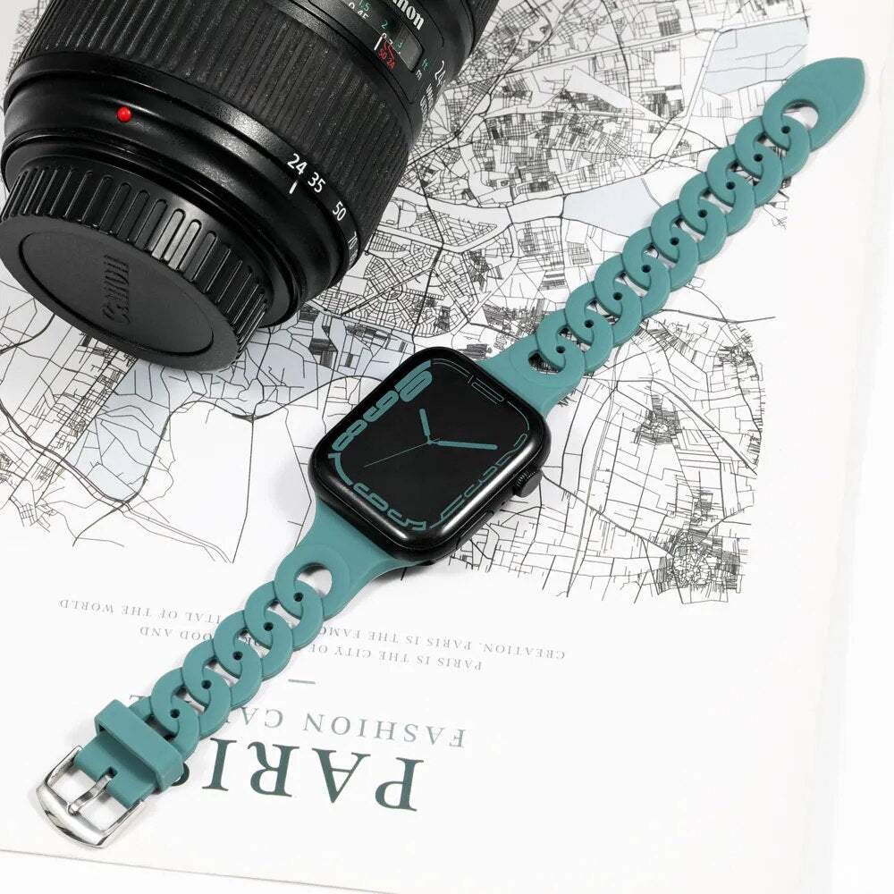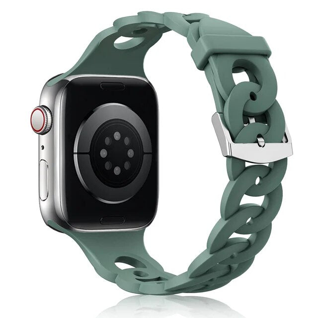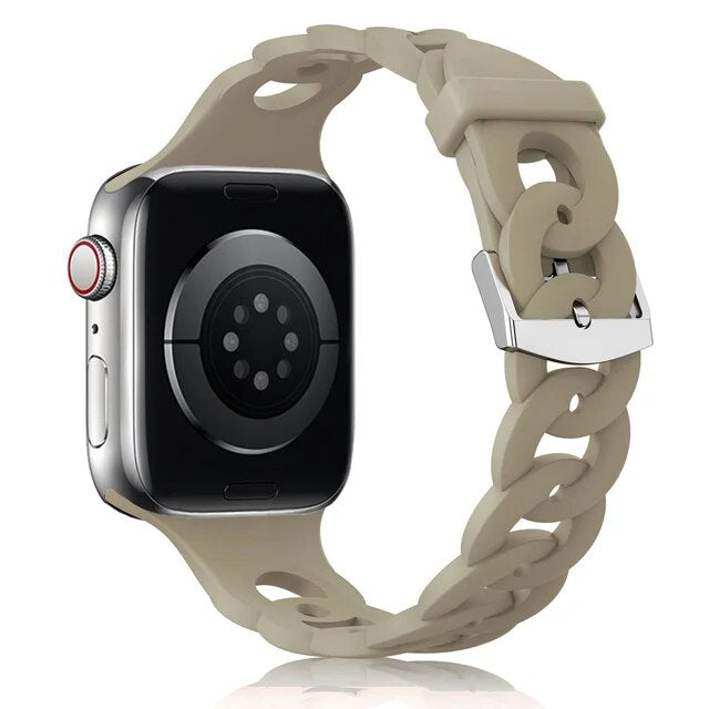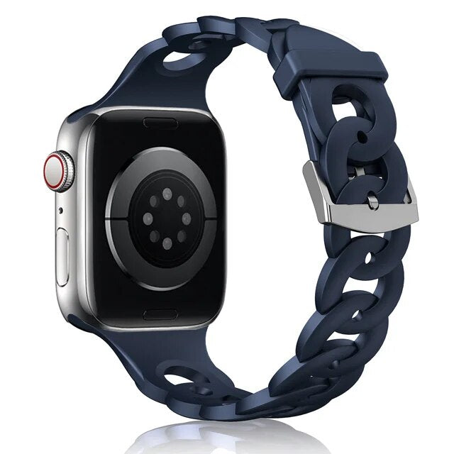 Our silicone strap for Apple Watch is designed to provide a secure and comfortable fit with a perfect look. The lightweight, breathable material is ideal for any activity and is easy to attach and remove. The strap is also sweat-resistant and wear-resistant, ensuring long-lasting performance.