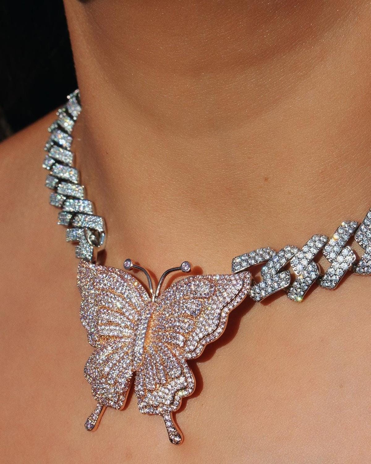 VVS Jewelry Roze Zilveren Vlinder Miami Cubaanse Choker