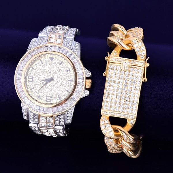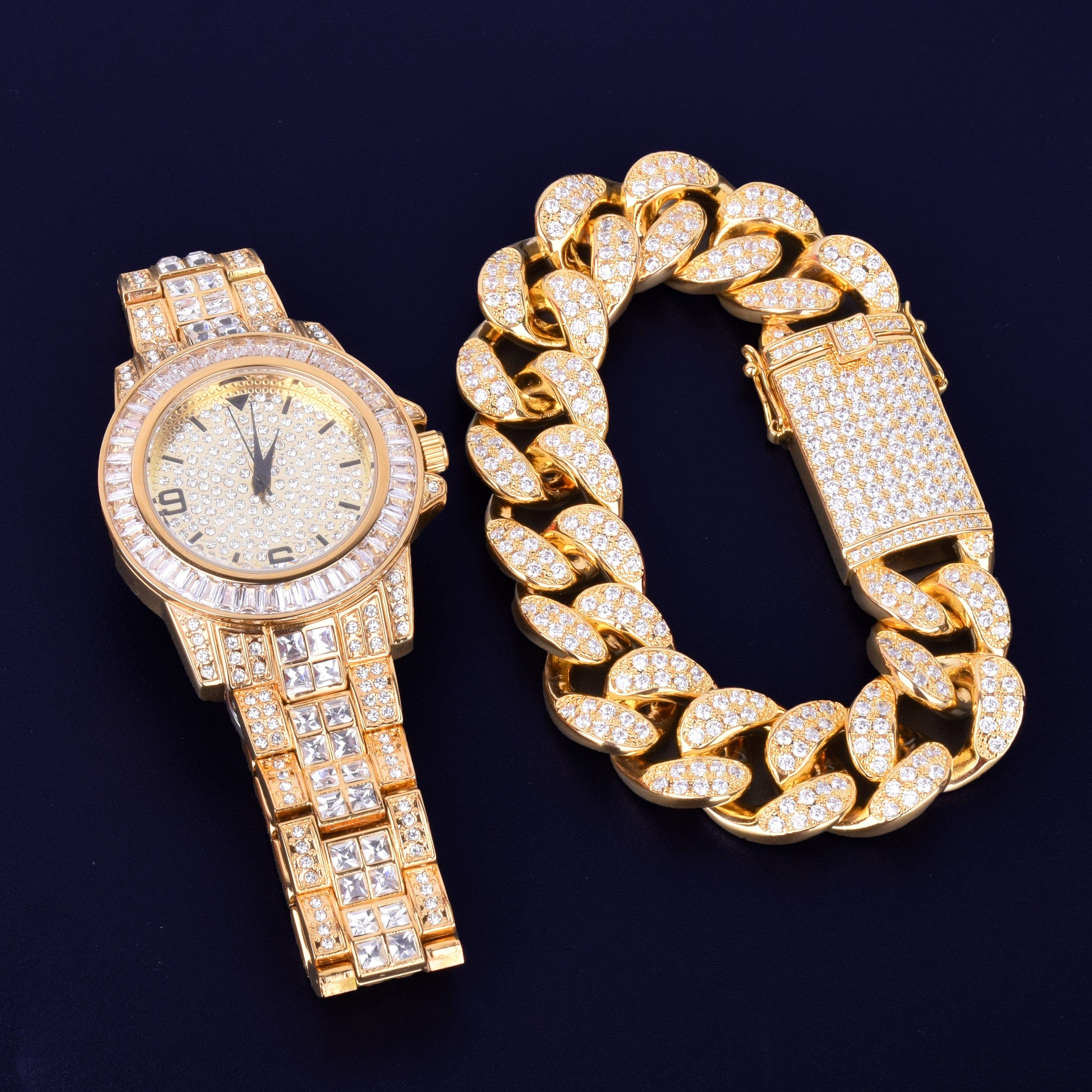 VVS Jewelry hip hop jewelry Miami Micro Pave Cuban Chain + Bracelet + Watch Set
