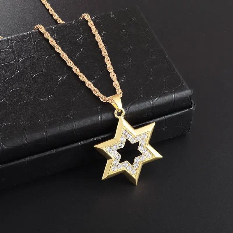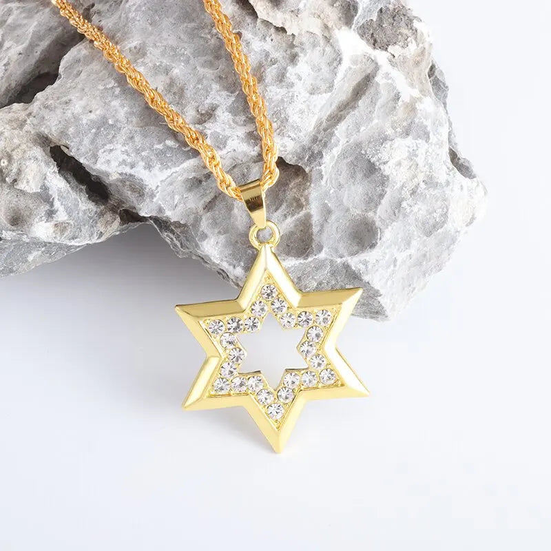 "Unleash your daring side with our Classic Charm Judaism Amulet Pendant. Made of iced out stainless steel, this necklace features the powerful Hexagram Star of David. Show off your style and faith with this bold, adventurous accessory."