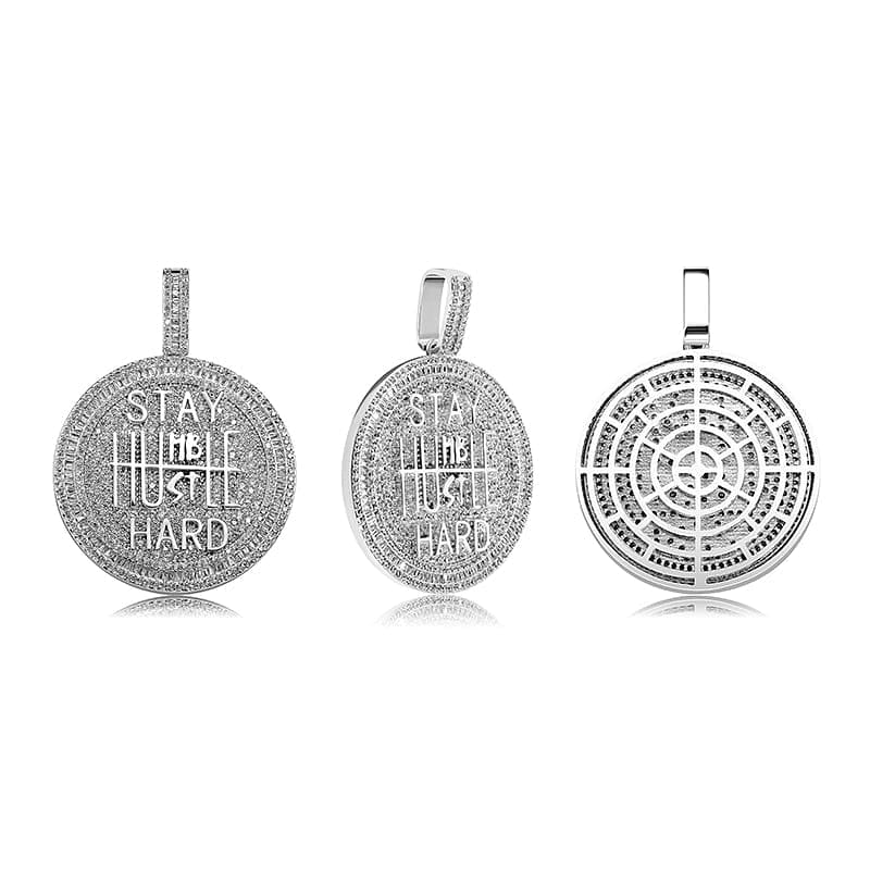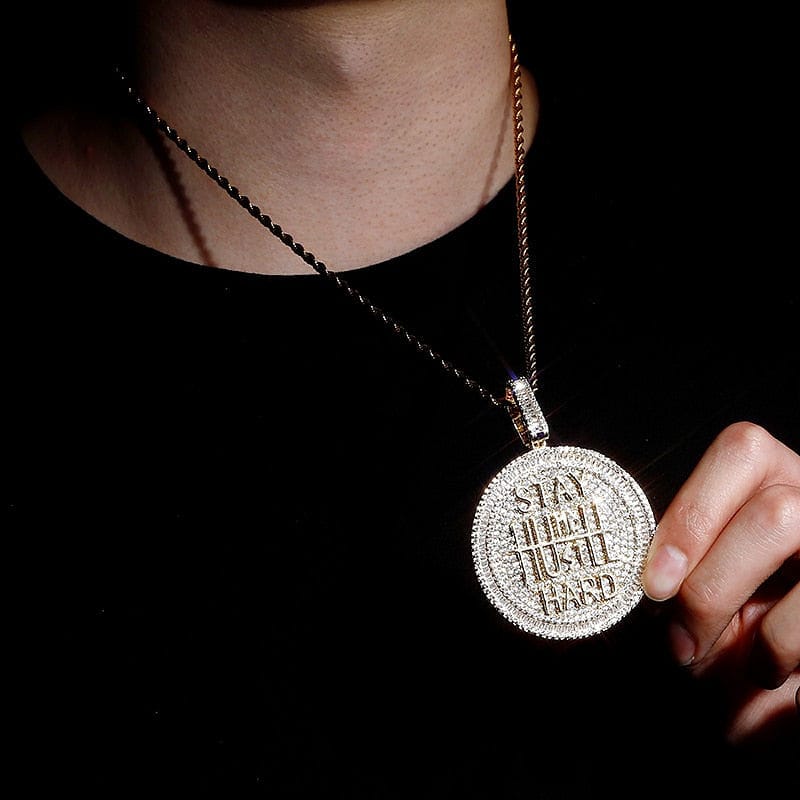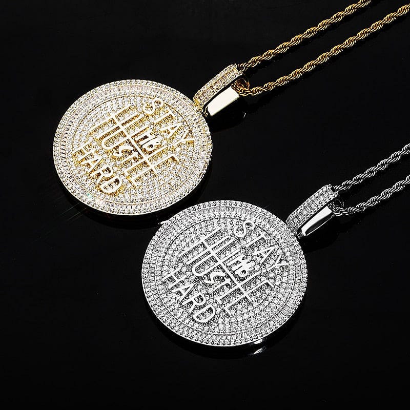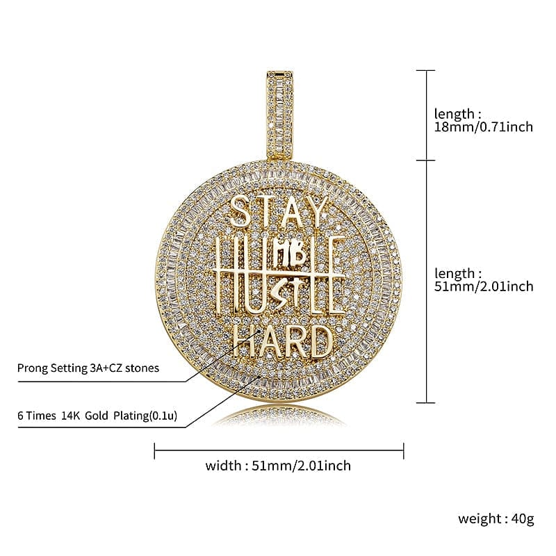 Fully Iced Stay Humble Hustle Hard Round Pendant Chain