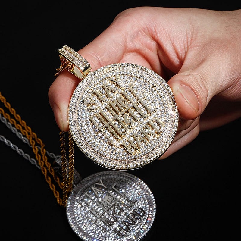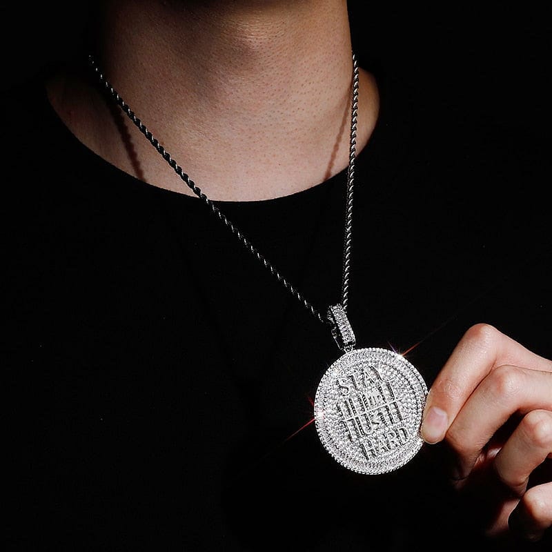 This fully iced pendant gives a premium look with carefully handset high-quality stones to add just the right amount of shine. Get the high-end luxury look at an affordable price with our Fully Iced Stay Humble Hustle Hard Round Pendant Chain. Our pendant exhibit deluxe style iced out superb quality Simulated diamonds, which are set in beautiful pieces to showcase a brilliant sparkle. Walk in the room with this extraordinary piece.