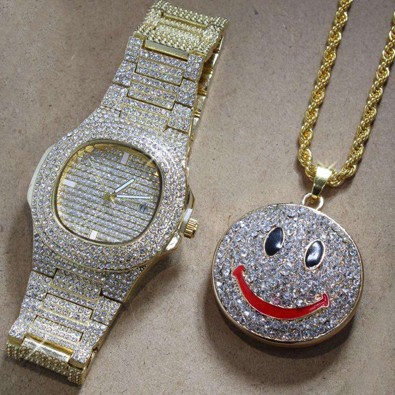 VVS Jewelry hip hop jewelry Everything Combo Set Iced Smiley Pendant + Watch Gift Set