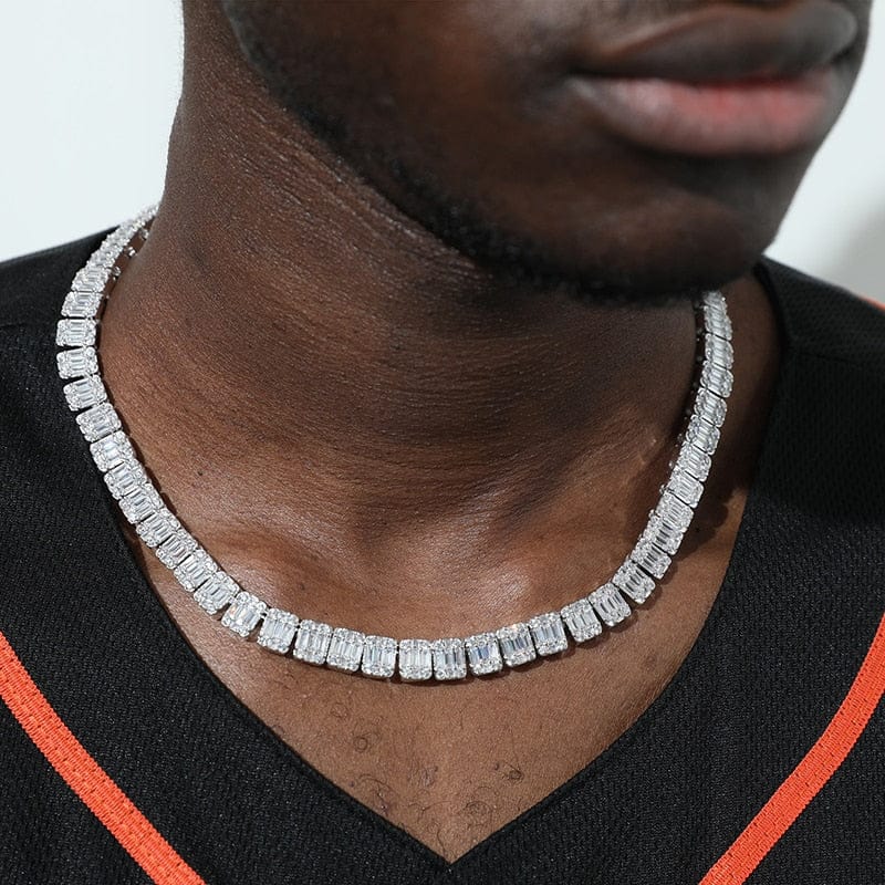 VVS Jewelry 9MM Prong Baguette White Gold Tennis Chain