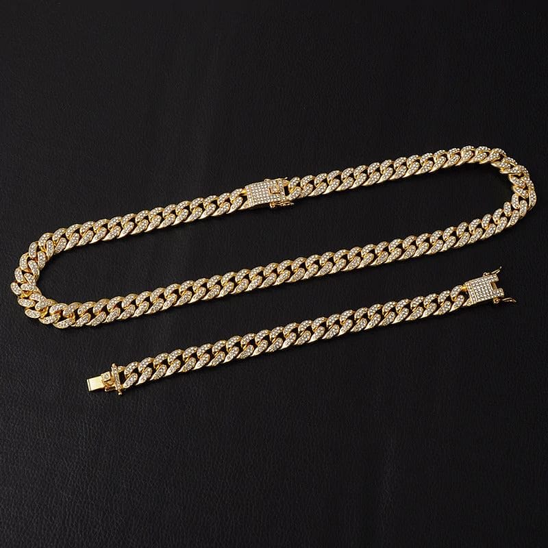 18k Gold/Silver Cuban Link Chain Set – Iced Out Necklace & FREE Bracelet